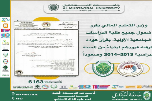 وزير التعليم العالي يقررشمول جميع طلبة الدراسات الجامعية الأولية بقرار عودة المرقنة قيودهم ابت...