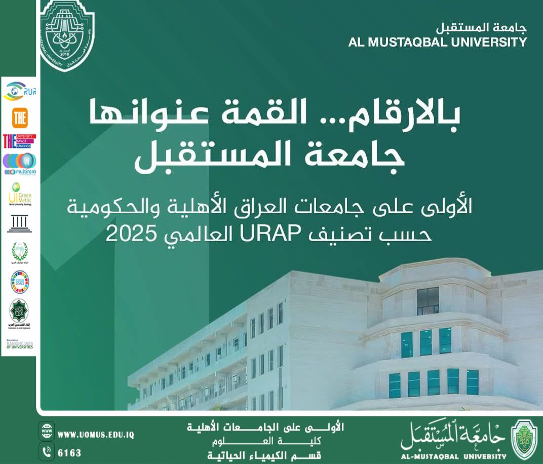 .حققت جامعة المستقبل إنجازًا أكاديميًا متميزًا بحصولها على المرتبة الأولى بين الجامعات الأهلية العرا...