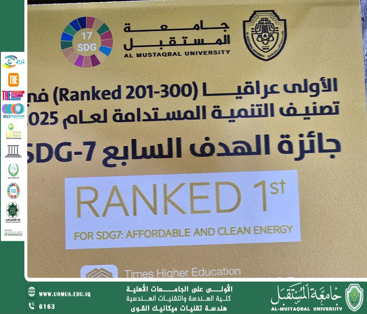 نتيجة للجهود المتواصلة من قسم هندسة تقنيات ميكانيك القوى لتحقيق الهدف السابع من أهداف التنمية المستد...