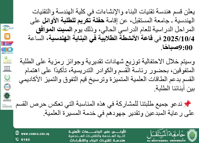 انت الان في قسم هندسة تقنيات البناء والانشاءات