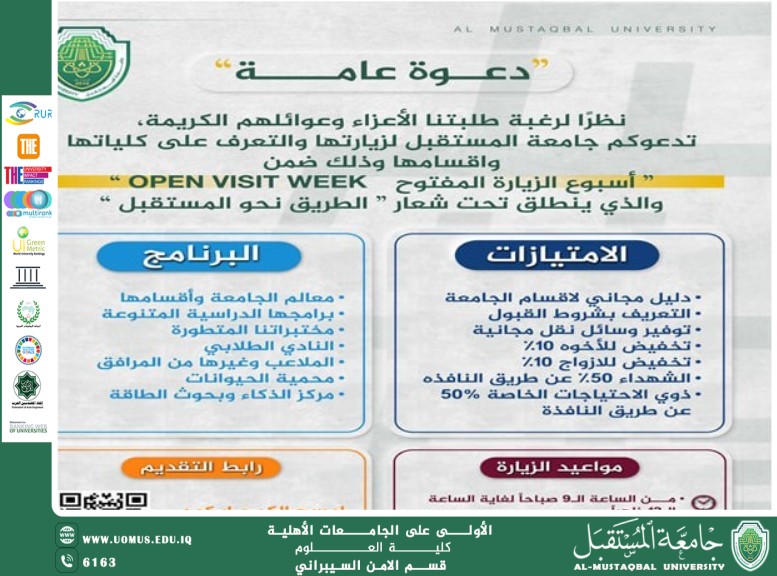 دعوة لطلاب السادس الإعدادي وعوائلهم لزيارة جامعة المستقبل