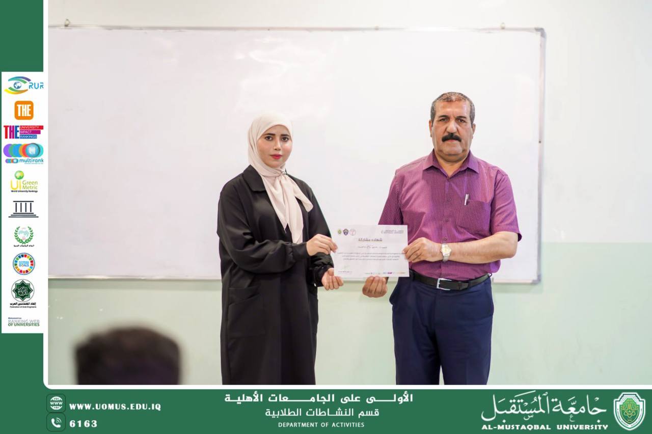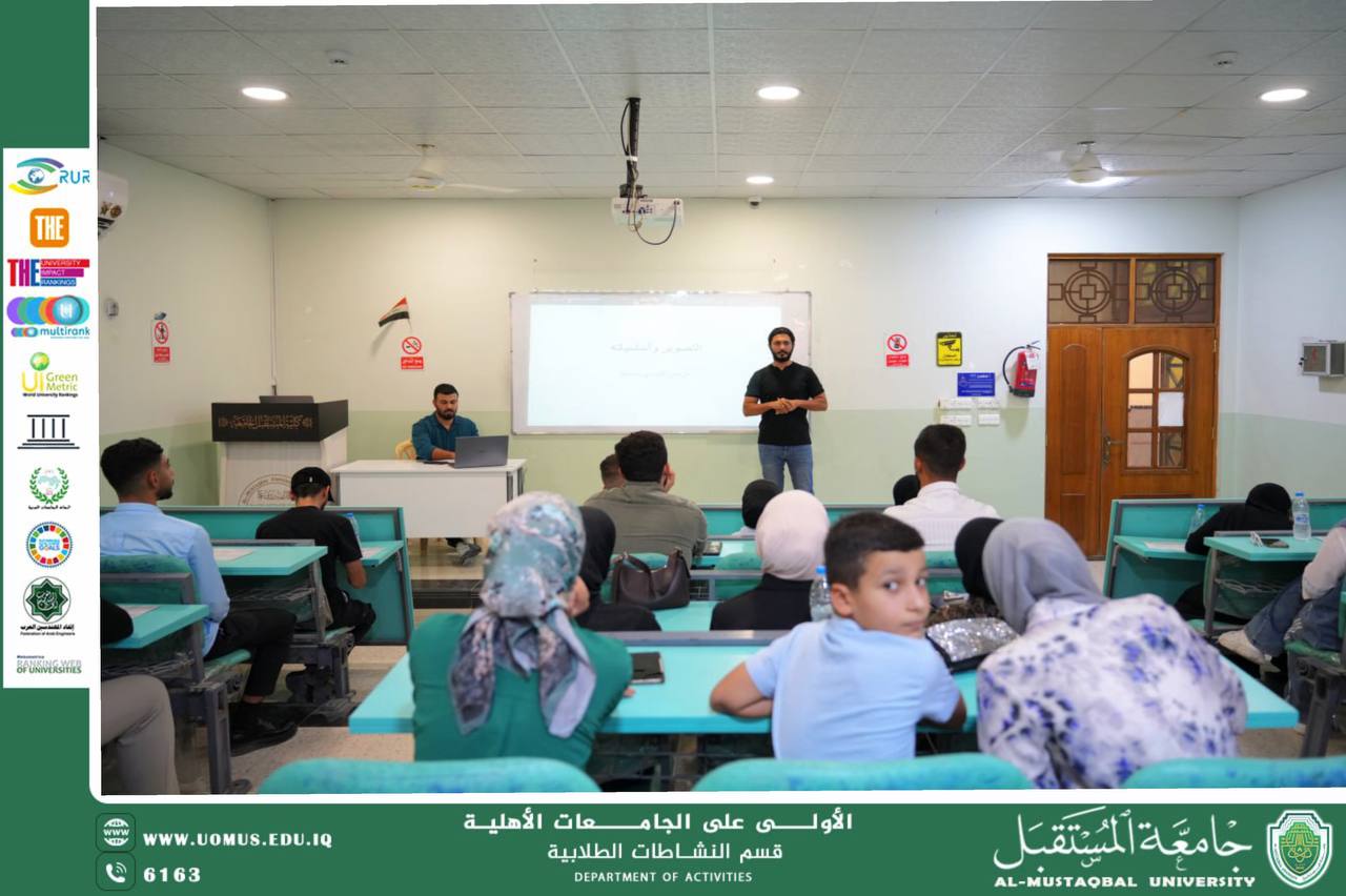 ضمن محور الأنشطة الفنية التي تنظمها جامعة المستقبل، أُقيمت دورة تدريبية بعنوان التصوير والمونتاج، والتي استهدفت تنمية مهارات الطلبة في مجال الإنتاج الإعلامي وصناعة المحتوى المرئي، تضمنت الدورة محاضرات تعريفية بأساسيات التصوير الفوتوغرافي والفيديو، وأنواع الكاميرات وزوايا التصوير، إضافةً إلى تدريبات عملية حول كيفية التقاط الصور والمقاطع بأسلوب احترافي، كما شملت الدورة جانبًا عمليًا في المونتاج، حيث تعرّف المشاركون على برامج المونتاج الأساسية وآليات دمج الصور والمقاطع وإضافة المؤثرات بما يخدم إخراج مادة إعلامية متكاملة، وقد خرجت الدورة بعدة نتائج مهمة، كان أبرزها تمكين المشاركين من استخدام أدوات التصوير بشكل أكثر احترافية، وتطوير قدراتهم في المونتاج وصناعة محتوى بصري جذاب، فضلًا عن تعزيز مهارات العمل الجماعي في تنفيذ مشاريع إعلامية مشتركة