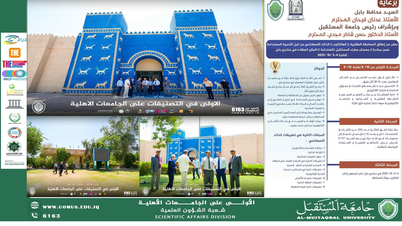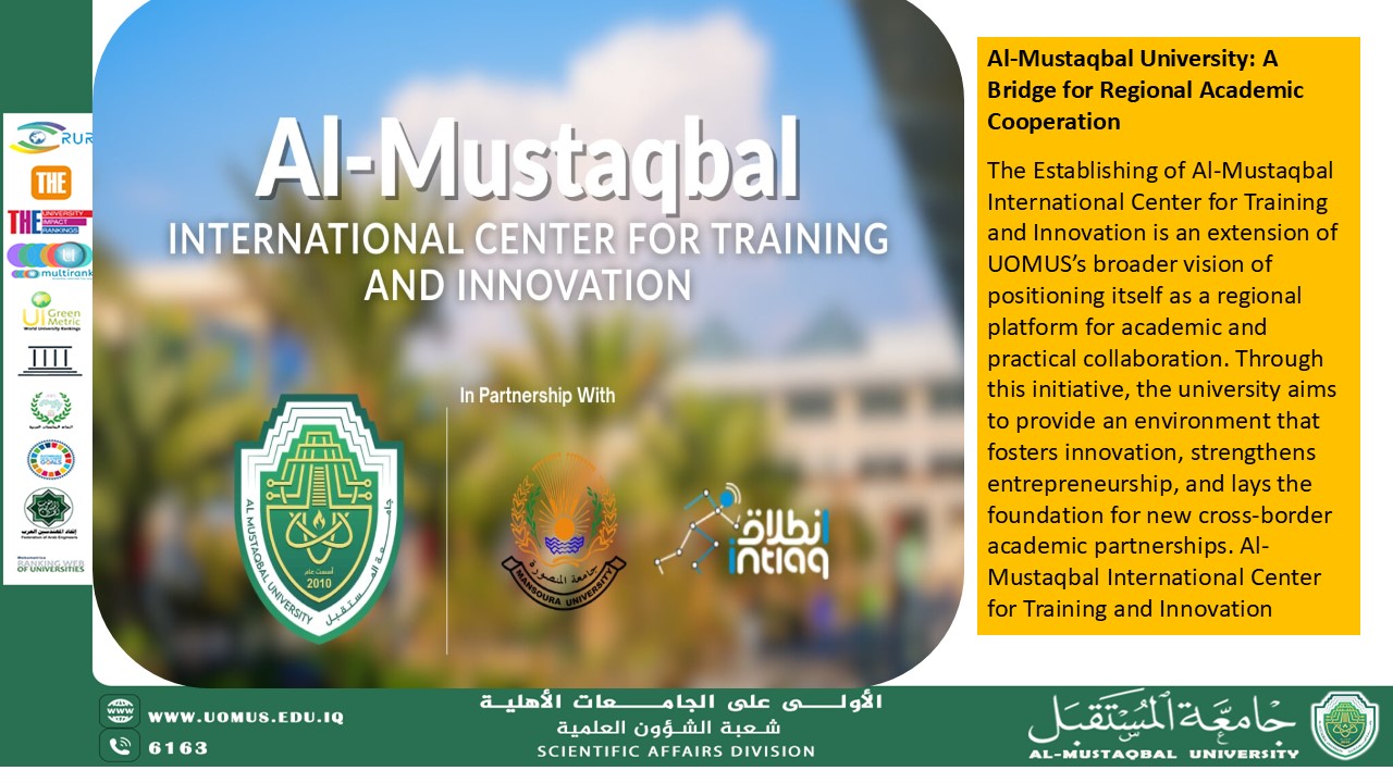وتأتي مشاركة جامعة المستقبل في هذه الورشة ضمن استراتيجيتها الرامية إلى الانفتاح على أحدث التطورات العلمية والتكنولوجية، وتعزيز مكانتها الأكاديمية بما يتوافق مع احتياجات سوق العمل المحلي والعالمي.