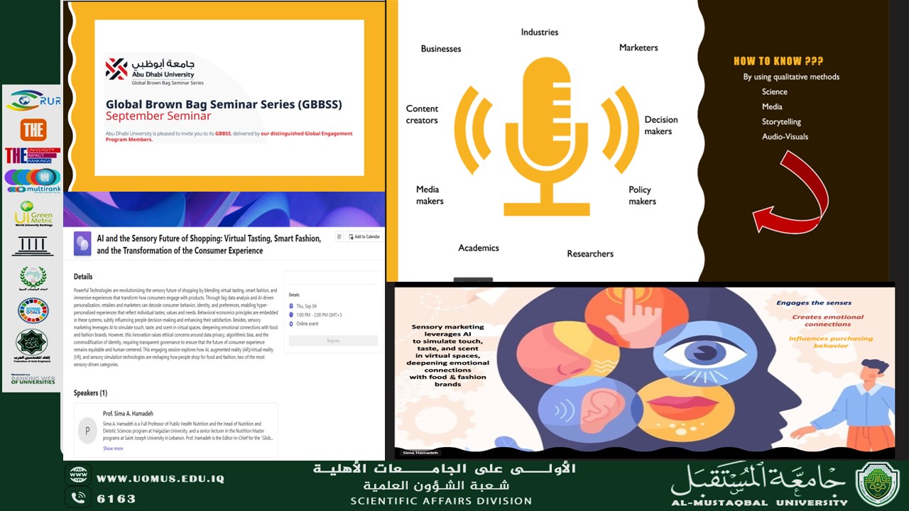 والتي ألقَتها الأستاذة البروفسور سيما أ. حماده، خبيرة التغذية العامة وأستاذة في جامعة هايغازيان – لبنان، بتاريخ الخميس 4 أيلول 2025 عبر منصة Microsoft Teams.