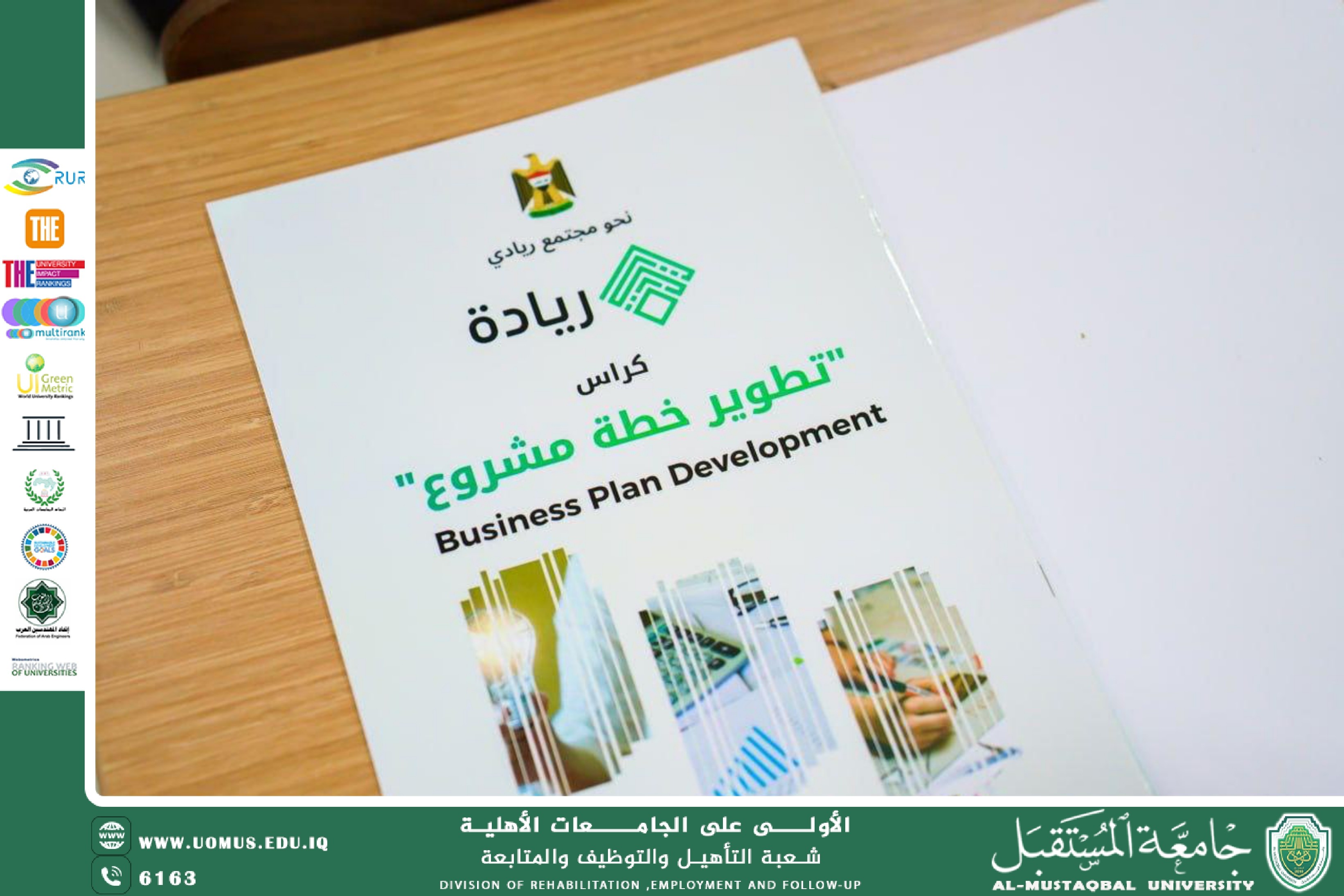 انسجامًا مع توجيهات السيد رئيس جامعة المستقبل الأستاذ الدكتور حسن شاكر مجدي في دعم الطلبة والخريجين وتمكينهم من دخول سوق العمل بثقة عالية، أطلقت الجامعة، وبالتعاون مع مديرية الريادة والتمييز في رئاسة الوزراء، الدورة التدريبية الخامسة عشرة بعنوان “تطوير خطة مشروع” (Business Plan Development)، وذلك للفترة من 24 إلى 28 آب 2025 بمشاركة 16 طالبًا وخريجًا من مختلف التخصصات الأكاديمية.