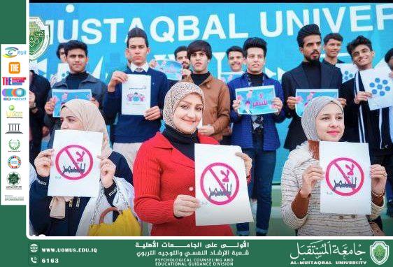 انطلاقًا من الدور الإنساني والتربوي الذي تقوم به جامعة المستقبل في نشر الوعي وتعزيز القيم المجتمعية، نظّمت شعبة الإرشاد النفسي والتوجيه التربوي حملة توعوية بعنوان "لا للعنف ضد المرأة"، تزامنًا مع الحملة العالمية السنوية لمناهضة العنف القائم على النوع الاجتماعي، والتي تستمر 16 يومًا.