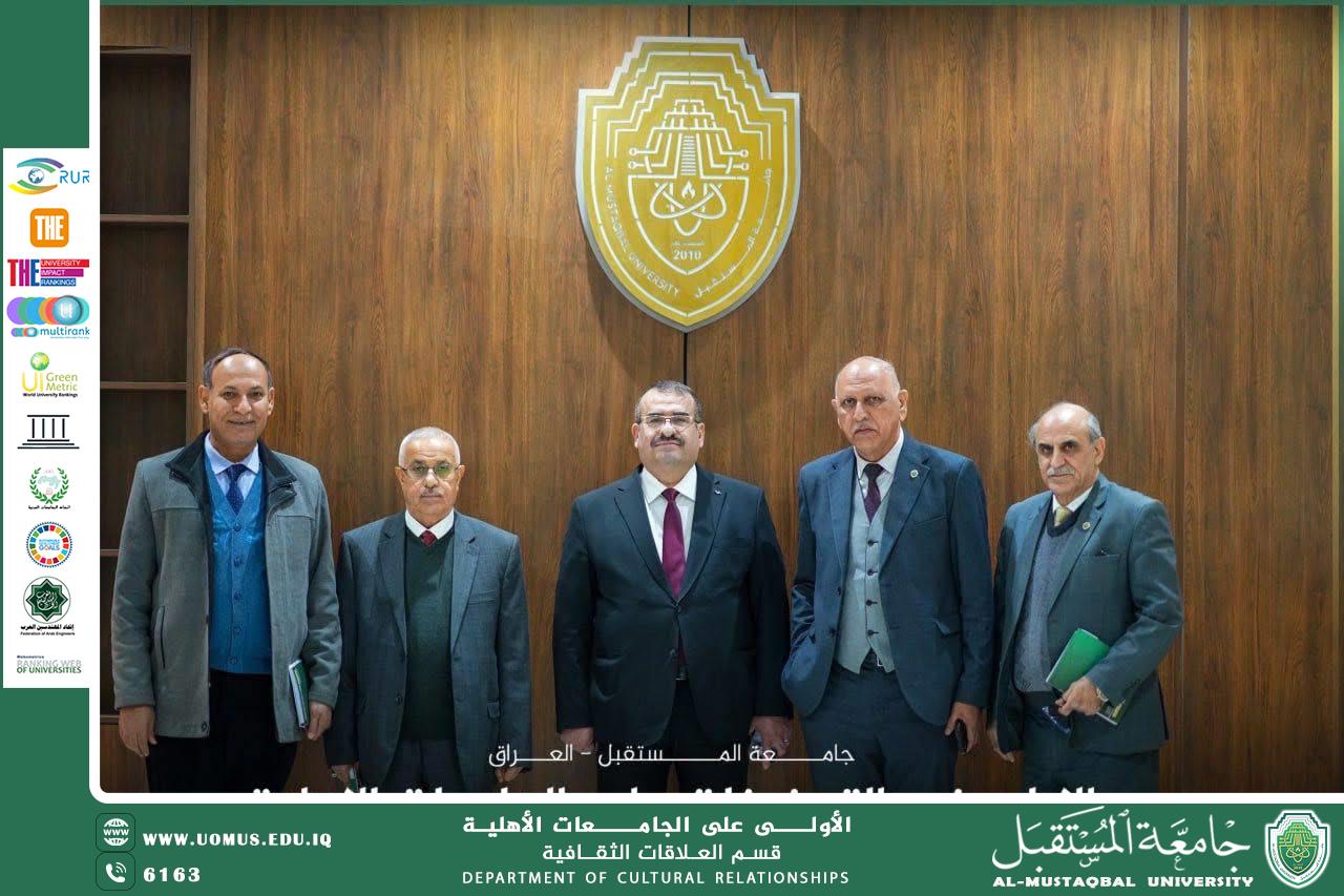 في سياق توجهات جامعة المستقبل نحو توسيع شراكاتها الوطنية وتعزيز التكامل المؤسسي، وبتوجيه ومتابعة مباشرة من السيد رئيس الجامعة الأستاذ الدكتور حسن شاكر مجدي، استضافت الجامعة السيد مدير عام المركز الوطني للتطوير الإداري وتقنية المعلومات في وزارة التخطيط الدكتور حسين علي داود الگرطاني.