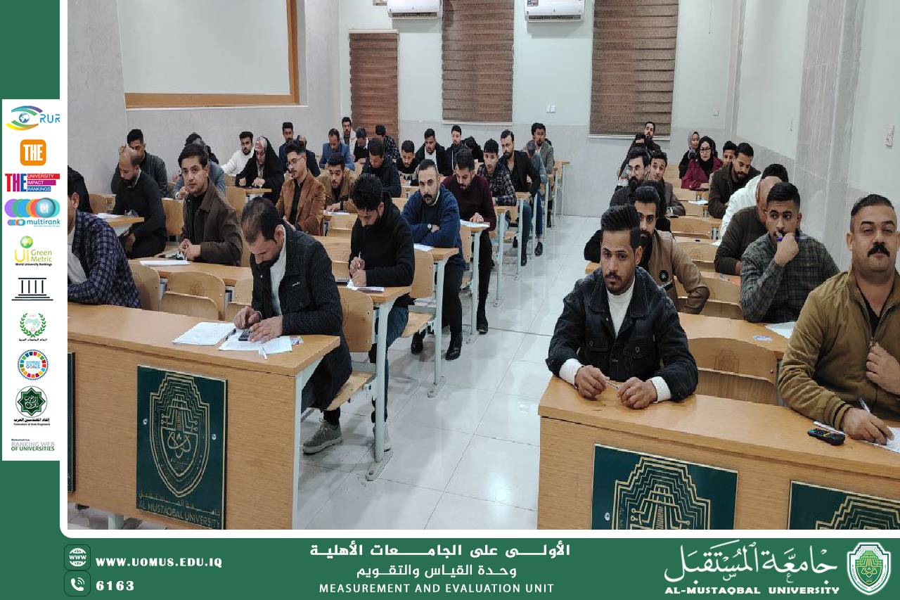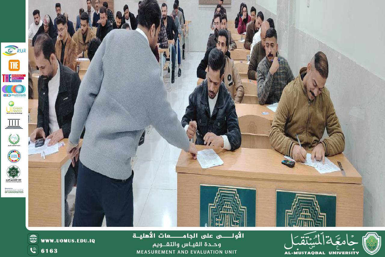 برعاية السيد الأستاذ الدكتور حسن شاكر مجدي رئيس جامعة المستقبل المحترم، وبإشراف مساعد رئيس الجامعة للشؤون العلمية الأستاذ المساعد الدكتور عباس عبد علي الباوي المحترم، انطلقت الامتحانات النظرية النهائية للفصل الدراسي الأول في كلية العلوم الإدارية – جامعة المستقبل، وسط أجواء تنظيمية وعلمية عكست حرص الجامعة على اعتماد أساليب تقييم حديثة وعادلة.
