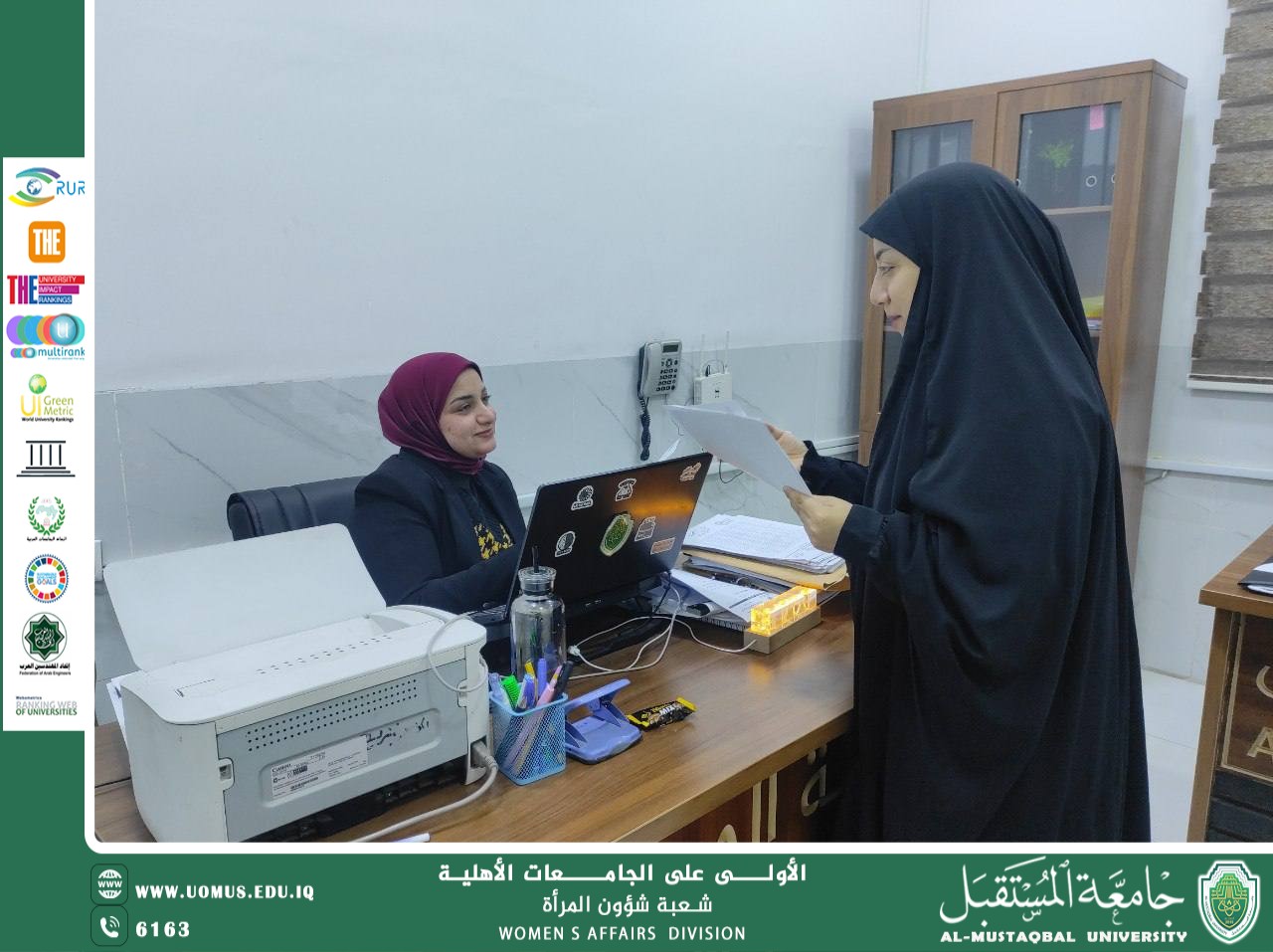 برعاية السيد رئيس جامعة المستقبل المحترم نظمت شعبة شؤون المرأة بالتعاون مع كلية التقنيات الصحية والطبية / قسم تقنيات التجميل والليزر، وبمشاركة كل من م.م. هيمن وليد مظلوم و الست شهد نورس،