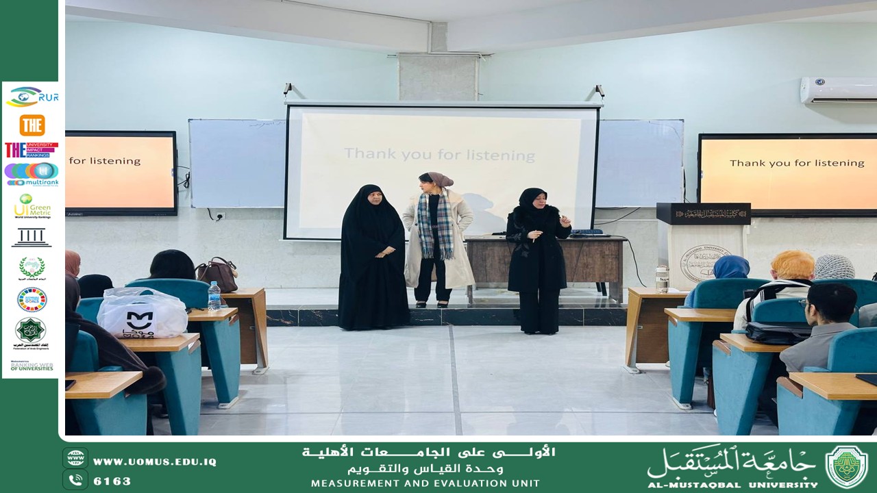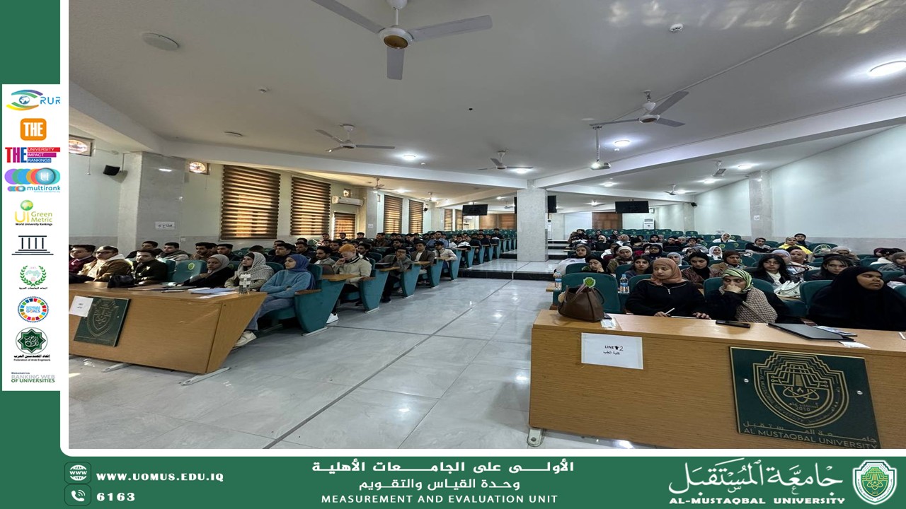 برعاية السيد الأستاذ الدكتور حسن شاكر مجدي رئيس جامعة المستقبل المحترم، أقامت كلية الطب في الجامعة ورشة علمية موجّهة لطلبة المرحلة الأولى بعنوان “التعليمات الامتحانية الخاصة بالطلبة وآلية التعامل مع الورقة الامتحانية”، في إطار سعي وحدة القياس والتقويم إلى نشر ثقافة التقويم الحديثة وتعزيز وعي الطلبة بالضوابط المعتمدة.