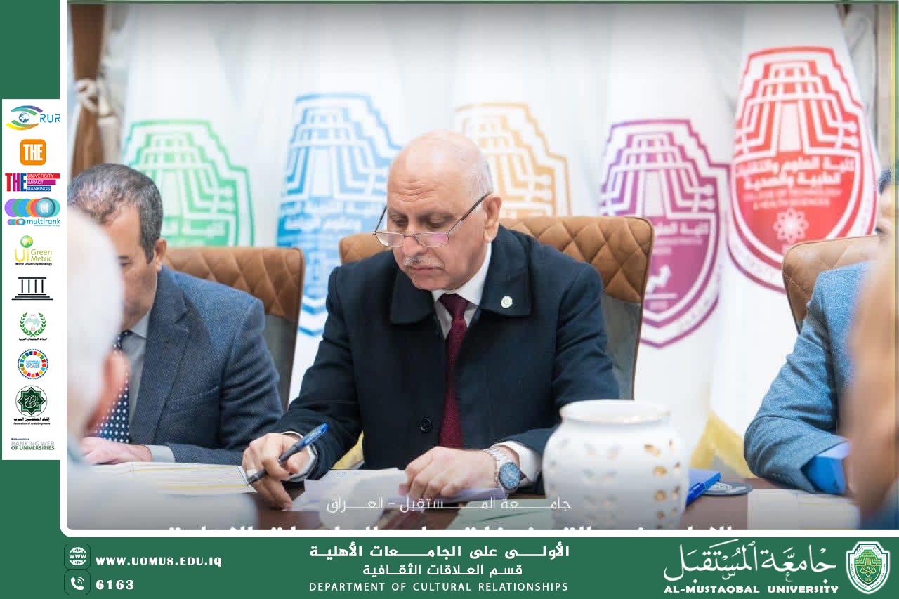 ترأس السيد رئيس جامعة المستقبل، الأستاذ الدكتور حسن شاكر مجدي، اجتماعًا موسّعًا لمتابعة الاستعدادات لانعقاد ملتقى EURAS Academy الذي تحتضنه الجامعة في التاسع والعشرين من شهر كانون الثاني الجاري، تأكيدًا على مكانتها الأكاديمية ودورها الريادي في تعزيز الحوار العلمي والانفتاح الدولي.