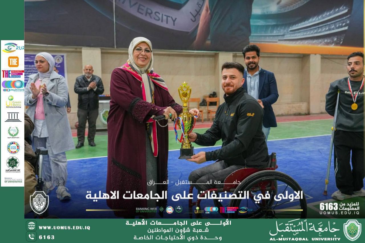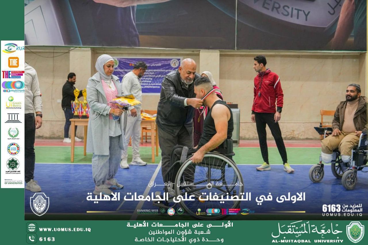 أقام قسم النشاطات الطلابية وشعبة شؤون المواطنين ( وحدة ذوي الاحتياجات الخاصة ) في جامعة المستقبل وبالتعاون مع منظمة تموز للتنمية الاجتماعية وبمشاركة كلية التربية البدنية وعلوم الرياضة مباراة بكرة السلة على الكراسي المتحركة بين لاعبي المنتخب الوطني للجنة البارالمبية في محافظة بابل .