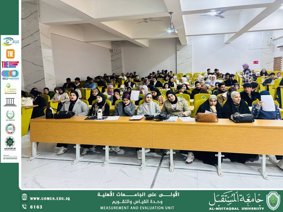 برعاية السيد الأستاذ الدكتور حسن شاكر مجدي رئيس جامعة المستقبل المحترم، أقام قسم الفيزياء الطبية في جامعة المستقبل ورشة تدريبية عملية لطلبة المرحلة الأولى، خُصصت للتدريب على آلية الإجابة الصحيحة لأسئلة الببل شيت، وذلك استعدادًا لامتحانات الفصل الدراسي الأول.