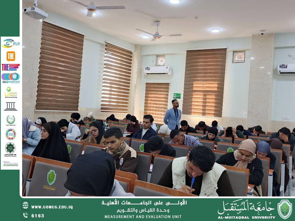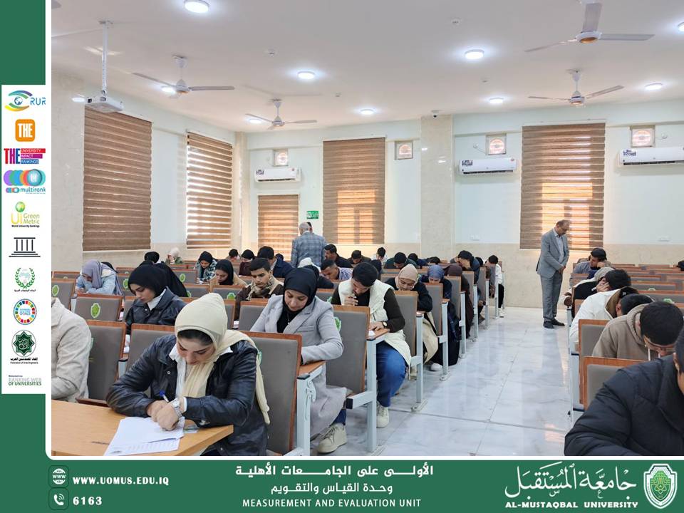 برعاية السيد رئيس جامعة المستقبل الاستاذ الدكتور حسن شاكر مجدي المحترم وبإشراف الاستاذ المساعد الدكتور عباس عبد علي الباري المحترم باشرت كلية التمريض امتحانات المد لطلبة المرحلة الأولى، في أجواء تنظيمية وعلمية عكست حرص الكلية على توفير بيئة امتحانية مناسبة تضمن العدالة والشفافية في تقييم المستوى الأكاديمي للطلبة.