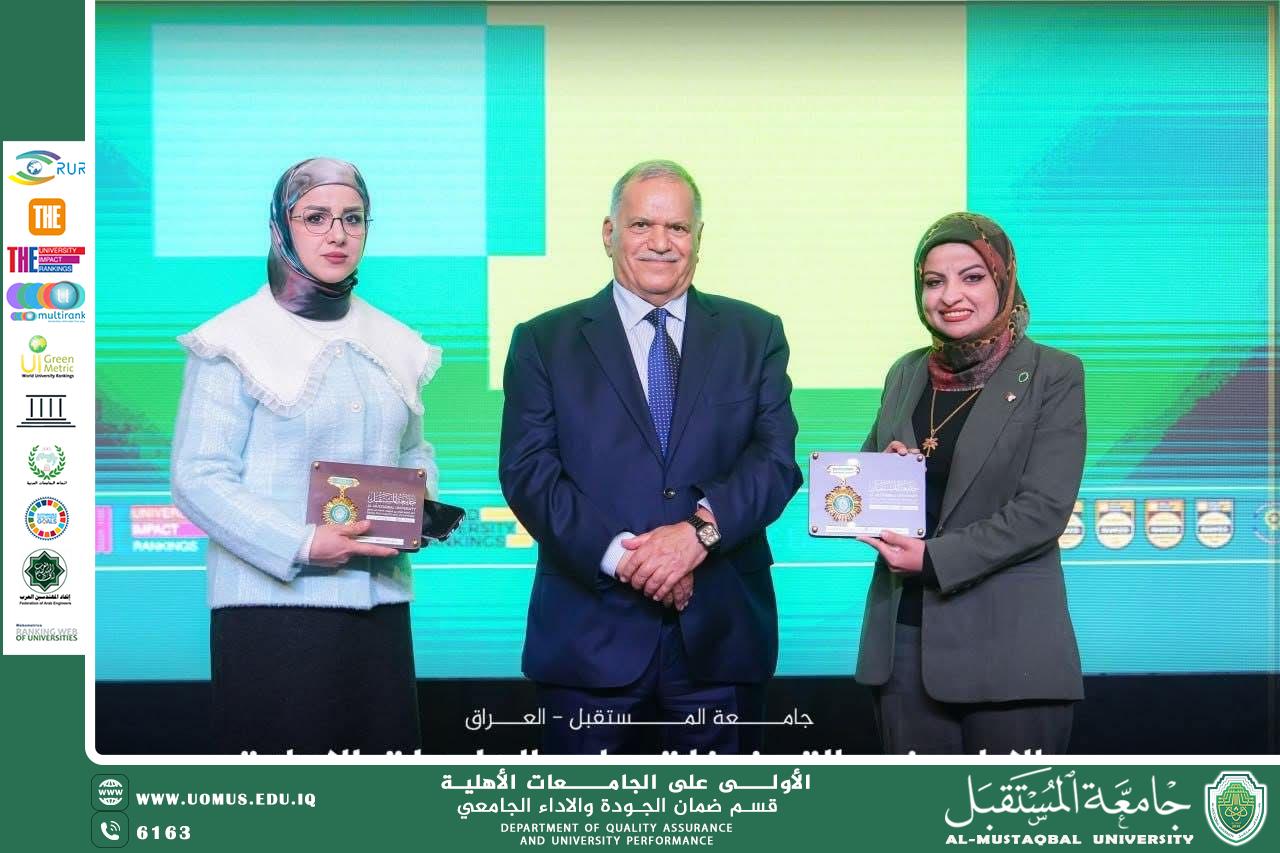 نظّمت جامعة المستقبل فعالية تكريمية للكوادر الأكاديمية والإدارية التي أسهمت في تحقيق مراتب متقدمة لعدد من أقسام الجامعة ضمن التصنيف العراقي للجامعات، وذلك برعاية السيد رئيس الجامعة المحترم.