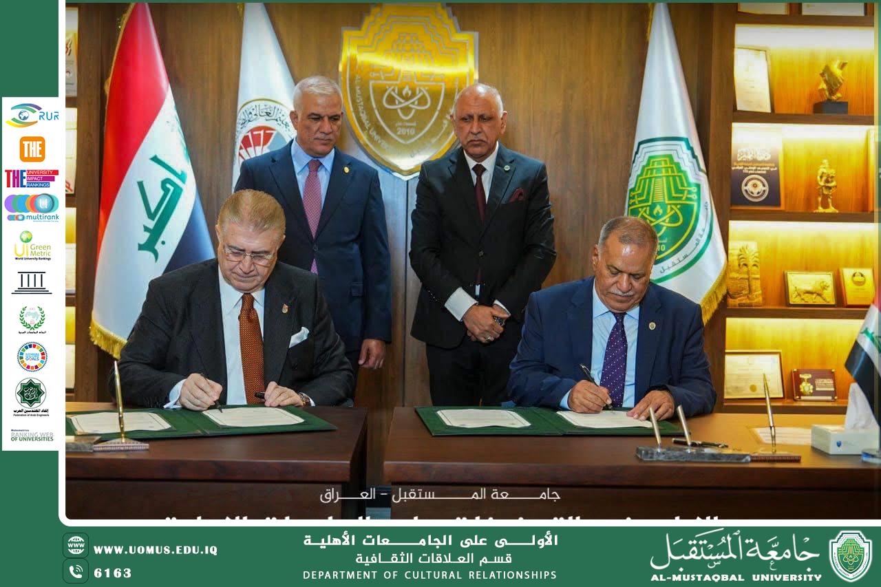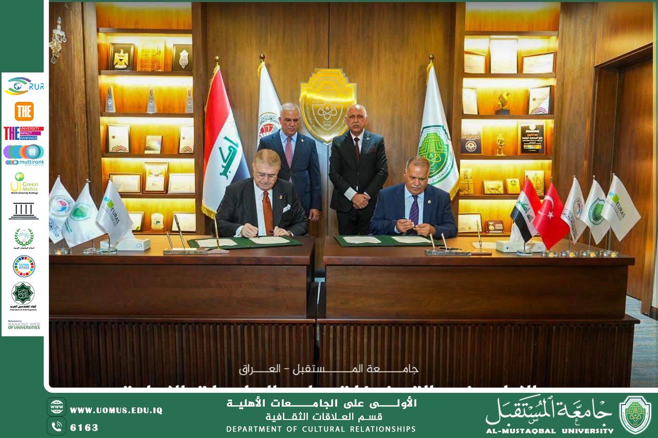 وعلى هامش الملتقى، وفي خطوة استراتيجية تهدف إلى تفعيل مخرجاته وتوصياته، جرى توقيع مذكرة تعاون علمي مشترك بين جامعة المستقبل، ممثلة برئيسها الأستاذ الدكتور حسن شاكر مجدي، وجامعة إسطنبول آيدن، ممثلة برئيسها الأستاذ الدكتور مصطفى آيدن، رئيس اتحاد الجامعات الأوروبية–الآسيوية (EURAS) الذي يضم أكثر من 150 جامعة من أوروبا وآسيا.