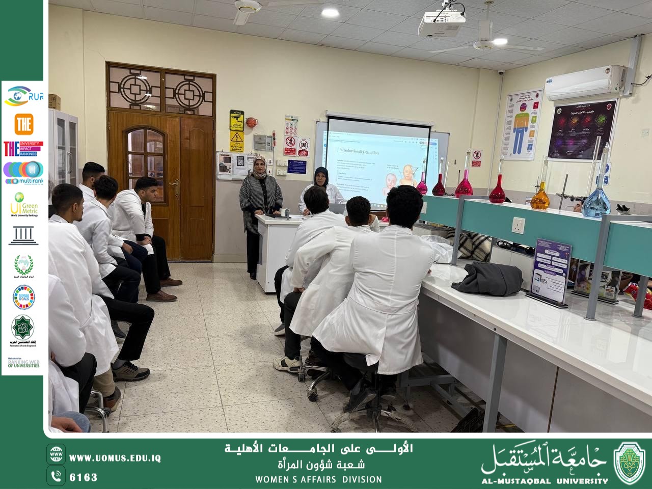 برعاية الاستاذ الدكتور حسن شاكر مجدي المحترم رئيس جامعة المستقبل قدمت شعبة شؤون المرأة بالتعاون مع كلية الطب في جامعة المستقبل ورشة توعوية بعنوان ( العادات الخاطئة في علاج اليرقان الولادي الذي يصيب الاطفال حديثي الولادة) .وقدمت الورشة الدكتورة وداد حمزة شكير وتطرقت للعادات الخاطئة التي تمارسها بعض النساء في محاولة علاج الاطفال حديثي الولادة بالطرق الشعبية او الاعشاب التي قد تؤذي صحة الطفل واوصت الدكتورة نشر ثقافة العلاج عن طريق المستشفيات والاطباء المختصين حرصا على حياة الاطفال . وقد حضر أ.م .د. كاظم جلوب حسن و م. م صبا صباح تايه وعدد من الطلبة في كلية الطب . كما حضرت م. م ماري عمران الطائي مسؤولة شعبة شؤون المرأة في جامعة المستقبل وذلك يوم الثلاثاء بتاريخ ٣/ ٢ / ٢٠٢٦ وجاءت الورشة ضمن ركيزة الحماية التطوير مهارات النساء في الحماية الذاتية وكذلك كانت ضمن الهدف الثالث ( الصحة الجيدة والرفاهية ) من أهداف التنمية المستدامة .