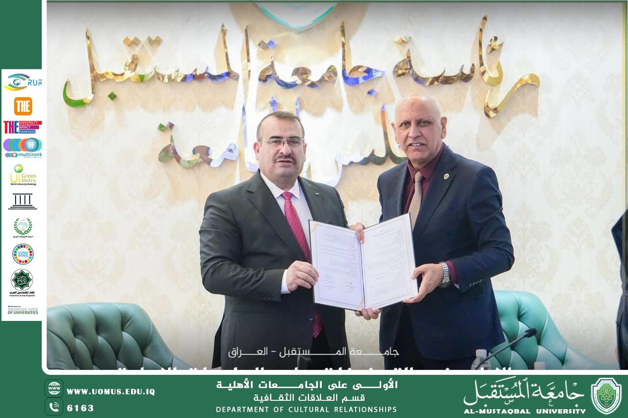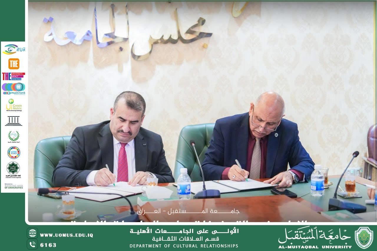 وأسفرت المباحثات عن توقيع محضر مشترك للتعاون يجسد هذه التوجهات، حيث جرى توقيعه من جانب جامعة المستقبل من قبل الأستاذ الدكتور مظفر صادق الزهيري، فيما وقّعه عن المركز الوطني للتطوير الإداري وتقنية المعلومات الدكتور المهندس حسين الگرطاني، مدير عام المركز.