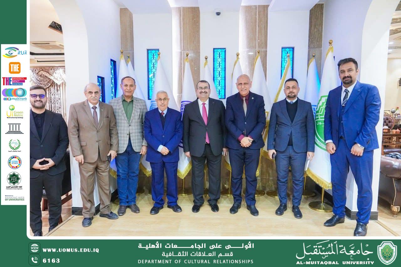 وكان في استقبال الضيف الأستاذ الدكتور منذر فاضل، المساعد الإداري لرئيس الجامعة، والأستاذ الدكتور مظفر صادق الزهيري، مدير الإشراف العلمي والأكاديمي، إلى جانب عدد من مدراء الأقسام المعنية في رئاسة الجامعة.