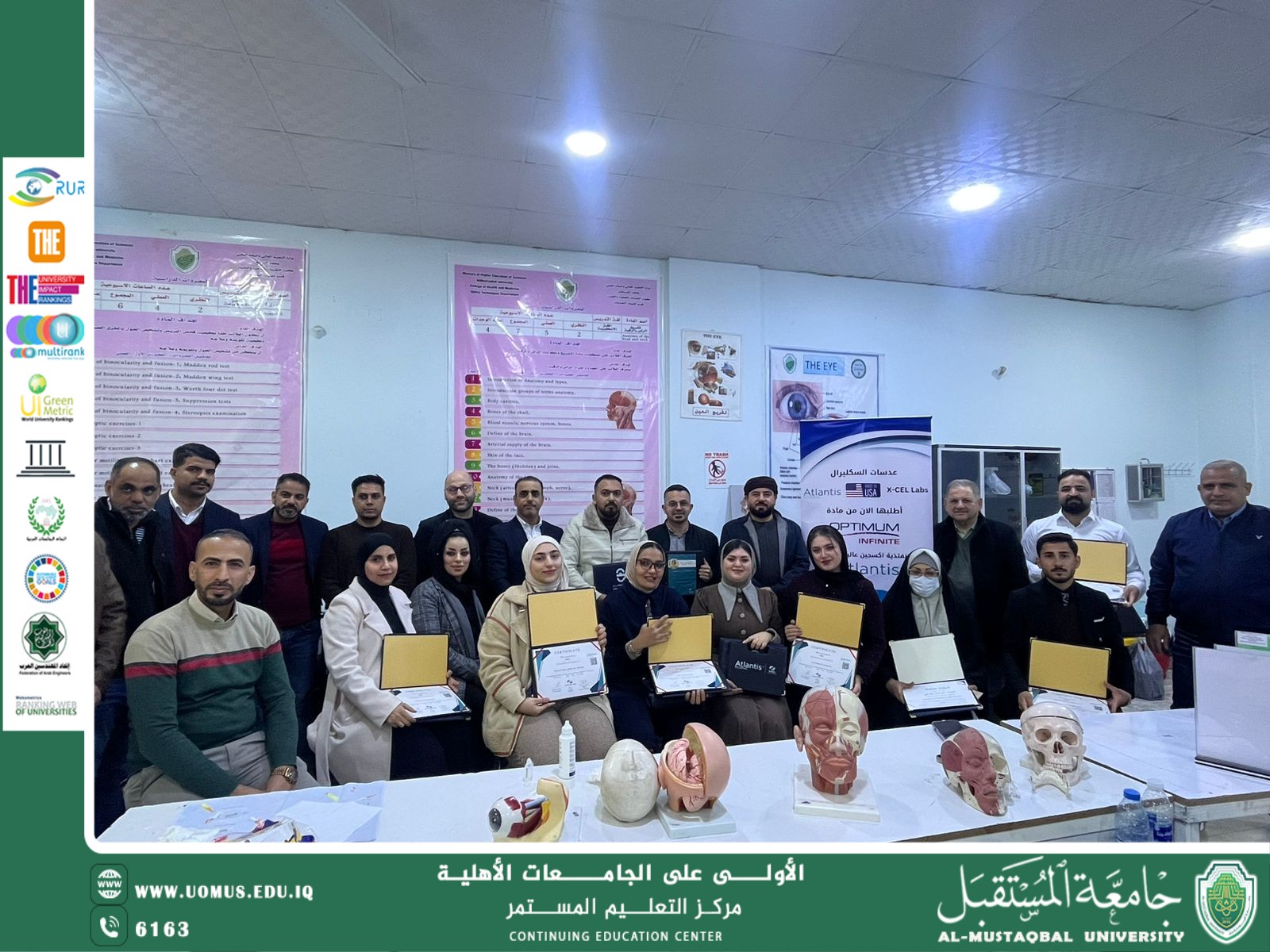 اقامة مركز التعليم المستمر في جامعة المستقبل فعاليات الدورة التخصصية الموسومة «علاجات القرنية المخروطية وعدسات السكليرال»، والتي شهدت حضورًا مميزًا من المختصين والمهتمين في مجال البصريات وصحة العين.