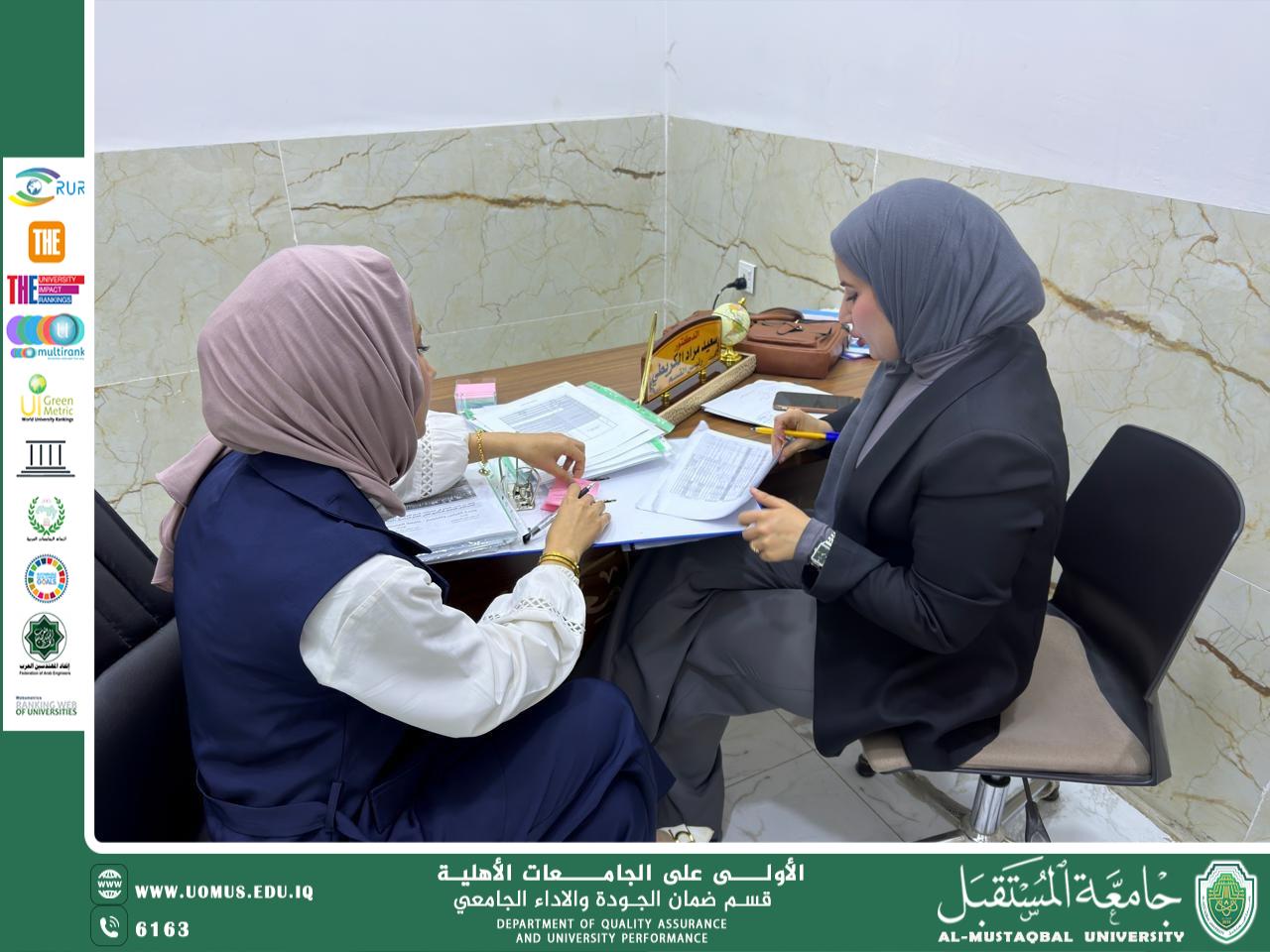 في إطار سعي جامعة المستقبل المستمر لتعزيز جودة الأداء الأكاديمي والإداري، استقبلت كلية التربية – قسم علوم القرآن والتربية الإسلامية لجنة الجودة المركزية في الجامعة، وذلك ضمن زيارتها الميدانية الهادفة إلى التدقيق ومتابعة مدى تطبيق معايير الاعتماد المؤسسي.