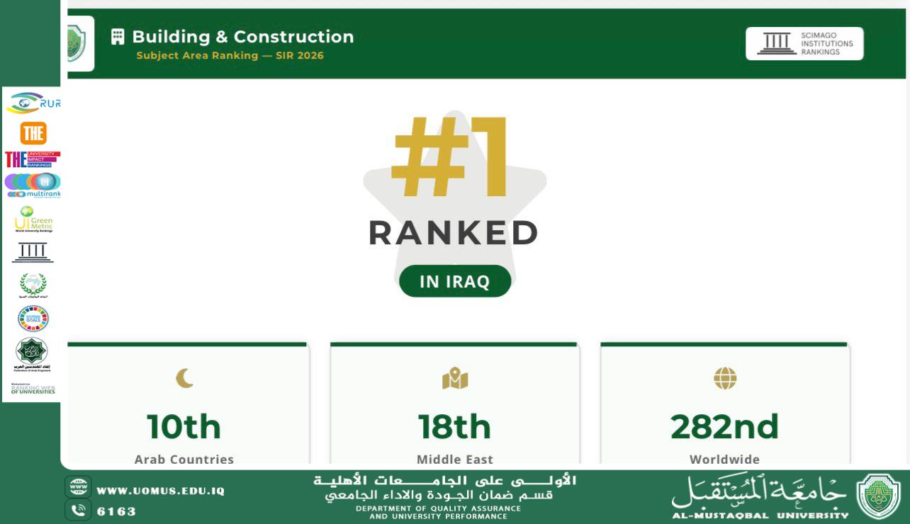 جامعة المستقبل تتصدر الجامعات الأهلية عراقياً في تصنيف سيماغو 2026