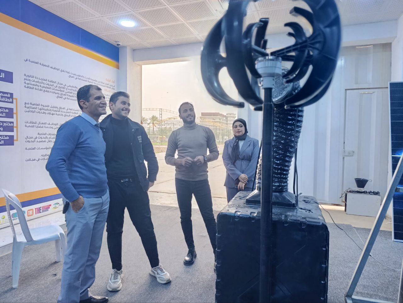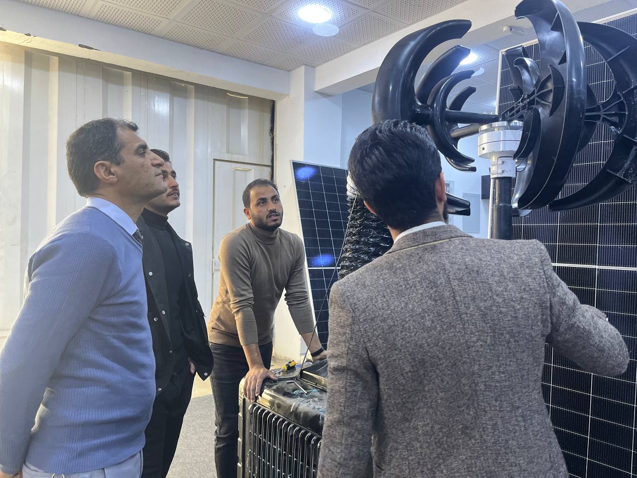 وخلال التشغيل التجريبي، قام الطلبة بعرض آلية عمل المنظومة والمكونات الرئيسية للتوربين، إضافة إلى توضيح طريقة تحويل الطاقة الحركية للرياح إلى طاقة كهربائية، فضلاً عن استعراض أنظمة القياس والمراقبة المستخدمة لقياس الجهد والتيار الناتج من المنظومة.