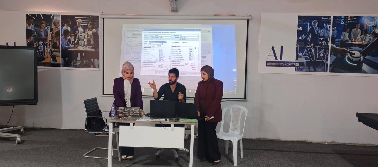 كما تم تدريب الطلبة على إدخال البيانات الخاصة بالموقع، واختيار مكونات المنظومة مثل الألواح الشمسية والانفرترات، بالإضافة إلى تحليل النتائج التي يقدمها البرنامج لتقييم كفاءة النظام وأدائه المتوقع.