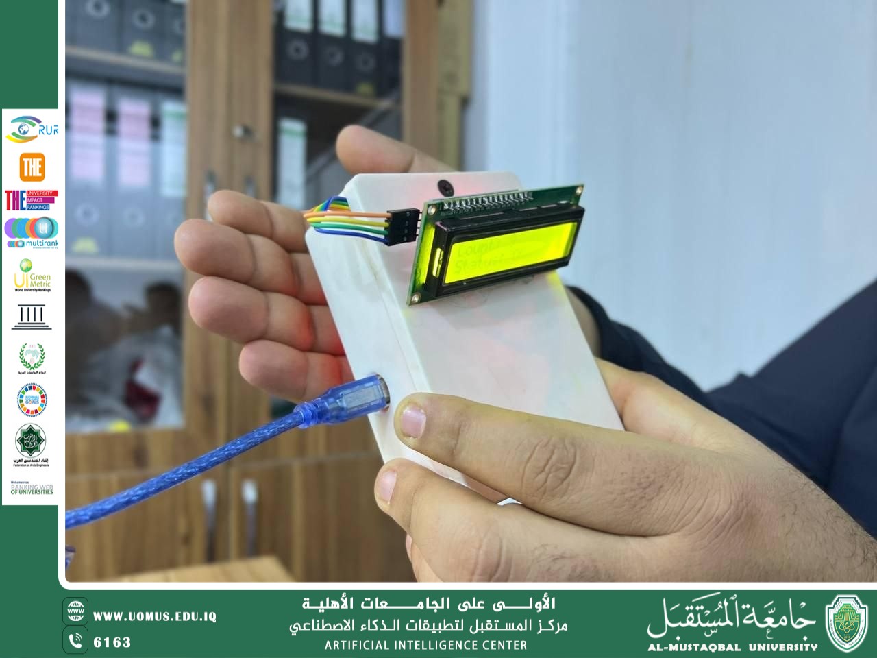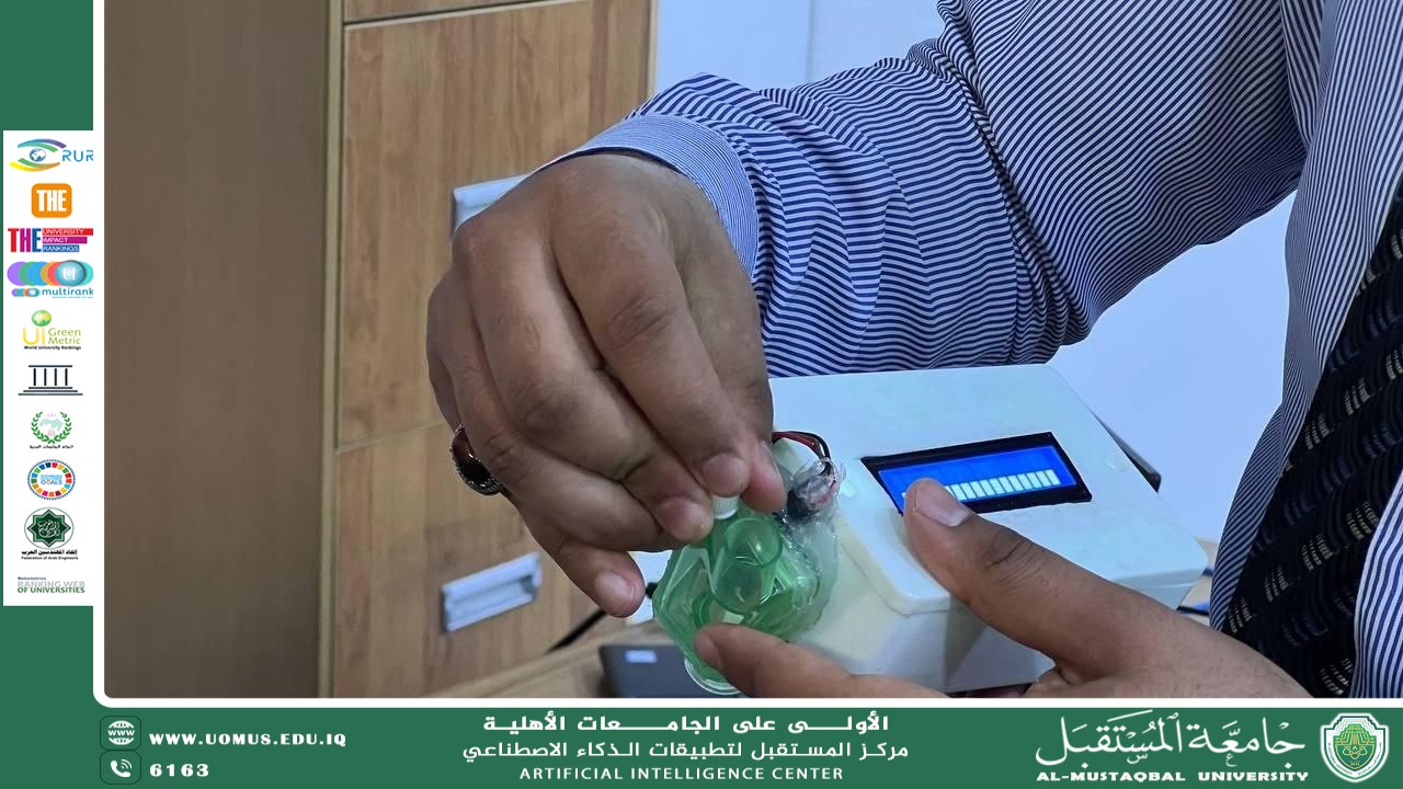 أنجز مركز المستقبل لتطبيقات الذكاء الاصطناعي في جامعة المستقبل، وبالتعاون مع كلية التقنيات الصحية والطبية / قسم تقنيات التخدير، مشروعاً تطبيقياً طبياً تمثّل في تصميم جهاز ذكي لحساب عدد قطرات المحلول الوريدي في الدقيقة، مزود بنظام إنذار صوتي عند انتهاء كمية المحلول.