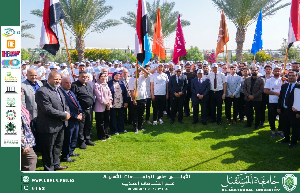 اختتمت جامعة المستقبل يوم الثلاثاء المصادف 14 نيسان 2026 في رحاب جامعتها بمحافظة بابل فعاليات "أسبوع المستقبل الدولي الرابع للاستدامة"، برعاية وحضور رئيس الجامعة الأستاذ الدكتور حسن شاكر مجدي وبمشاركة واسعة من الأكاديميين والطلبة. جاء حفل الختام تتويجاً لأسبوع حافل بالأنشطة، حيث أكد السيد رئيس الجامعة على أهمية الحدث كمنصة لترسيخ مفاهيم الاستدامة، مشيداً بالإنجازات النوعية التي تحققت. ومن جانبه أوضح مدير الإشراف العلمي الأستاذ الدكتور مظفر صادق الزهيري أن الأسبوع جسّد "لوحة متكاملة من الإبداع"، مشيراً إلى تنوع الفعاليات بين مؤتمرات علمية ومعارض تقنية ومشاريع ابتكارية طلابية حملت حلولاً للتحديات المعاصرة.