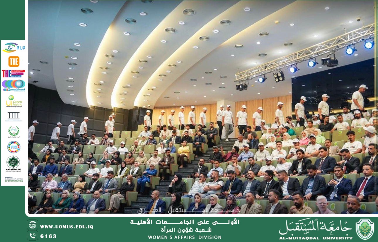 اختتمت جامعة المستقبل فعاليات أسبوع المستقبل الدولي الرابع للاستدامة 2026،بتاريخ 14/4/2026 في أجواء أكاديمية متميزة جسّدت روح الابتكار والتكامل المعرفي، وذلك برعاية وحضور رئيس الجامعة الأستاذ الدكتور حسن شاكر مجدي، وبمشاركة واسعة من الملاكات التدريسية والمنتسبين والطلبة، فضلاً عن شركاء الجامعة من مختلف المؤسسات.