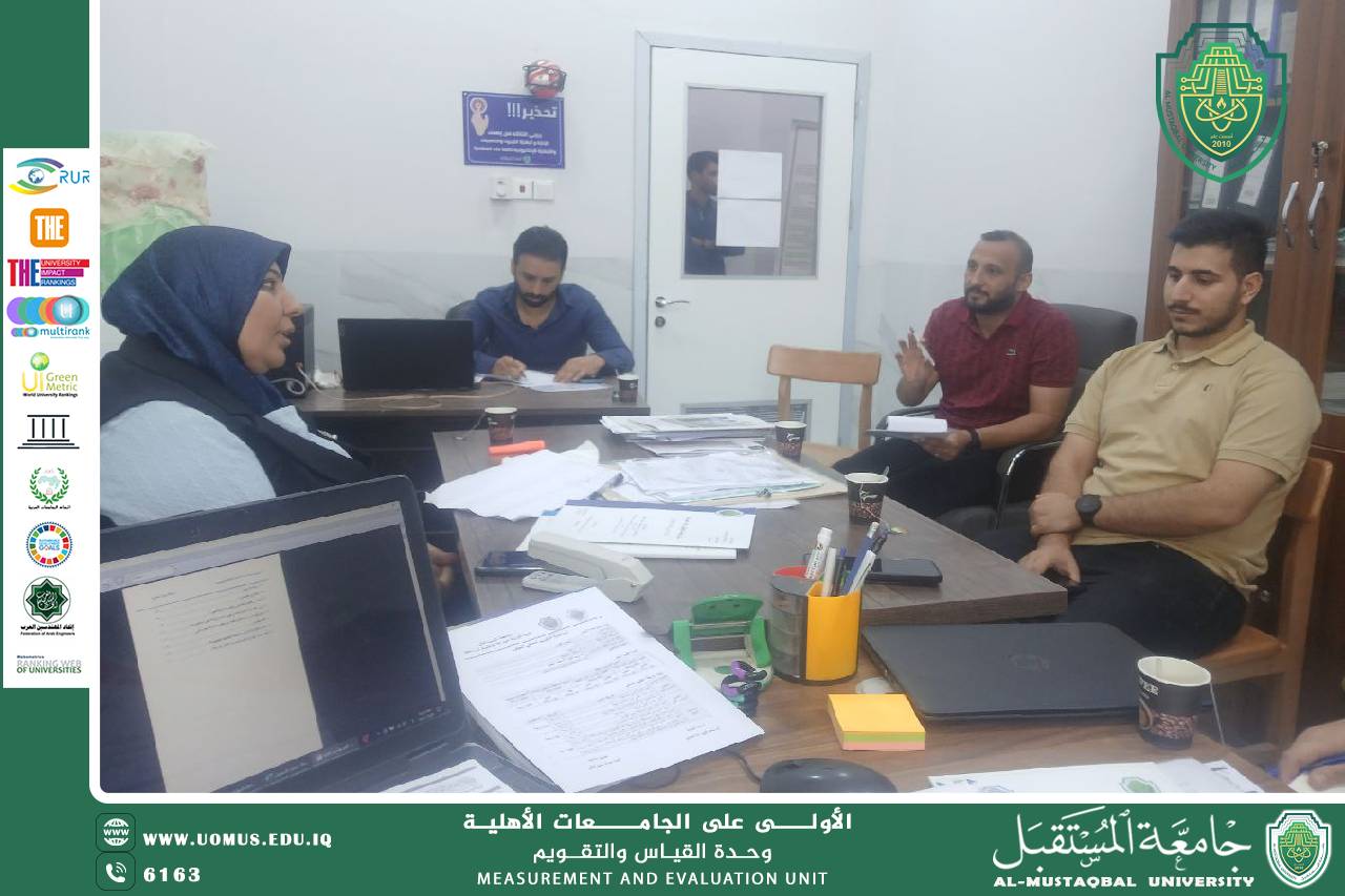 برعاية السيد رئيس جامعة المستقبل الأستاذ الدكتور حسن شاكر مجدي المحترم، وبإشراف الأستاذ المساعد الدكتور عباس الباوي المساعد العلمي لرئيس الجامعة، ومتابعة الأستاذ الدكتور سعد فتح الله العالم مدير وحدة القياس والتقويم في الجامعة، عقدت لجنة إعداد دليل المهارات اجتماعها الأول في مقر وحدة القياس والتقويم.