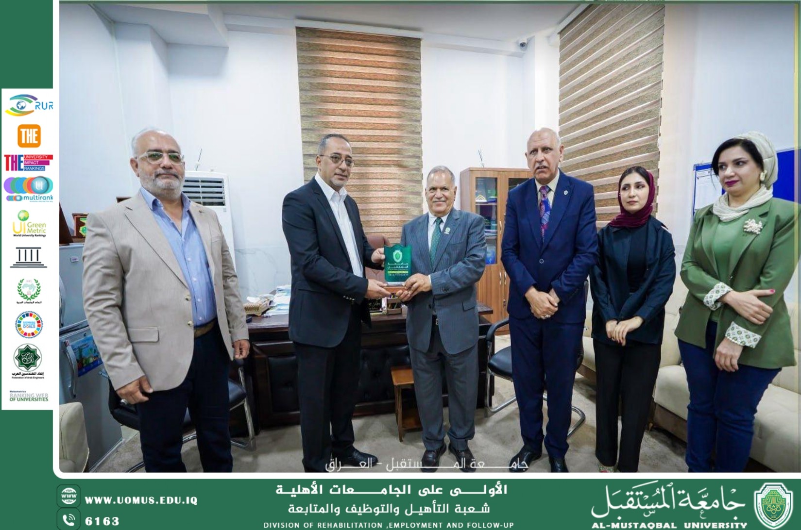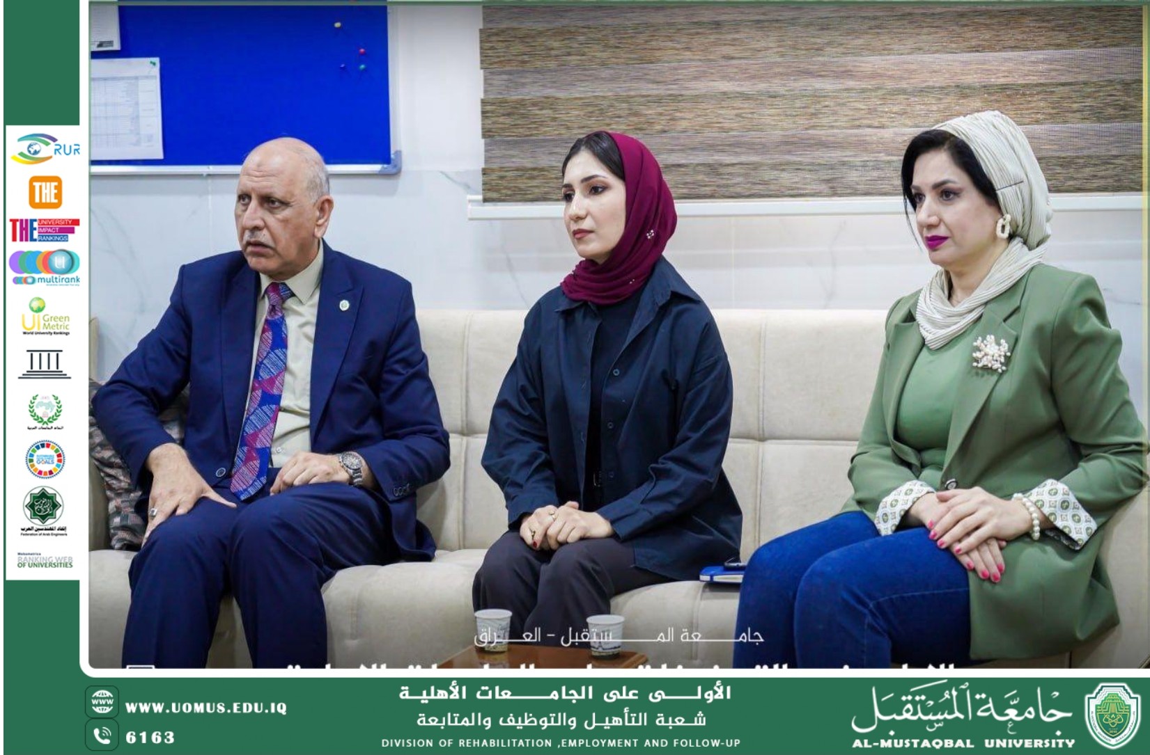 وقد حضر الاجتماع كل من الدكتور مظفر صادق الزهيري والمدرس المساعد أميمة كاظم، مسؤول شعبة التأهيل والتوظيف والمتابعة، إلى جانب ممثلين عن مكتب السيد رئيس الجامعة.