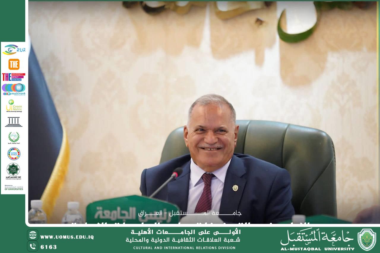 في إطار متابعته المستمرة للأداء العلمي والأكاديمي، ترأس السيد رئيس جامعة المستقبل الأستاذ الدكتور حسن شاكر مجدي اجتماعاً موسعاً ضم مديري ومنتسبي الأقسام والشعب العلمية في رئاسة الجامعة، لمراجعة سير العمل والوقوف على مؤشرات الأداء في الجوانب العلمية والإدارية والأكاديمية.