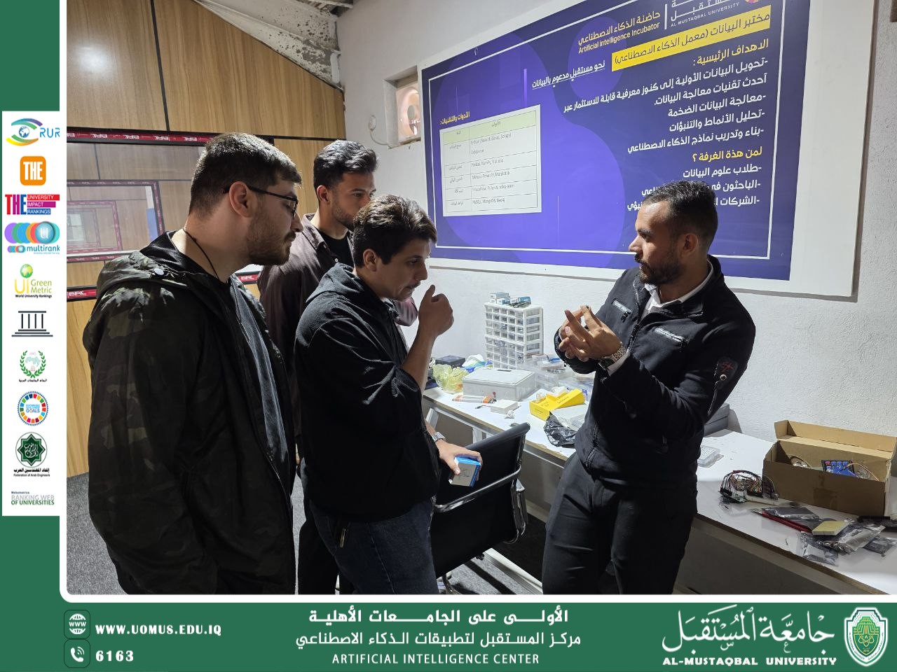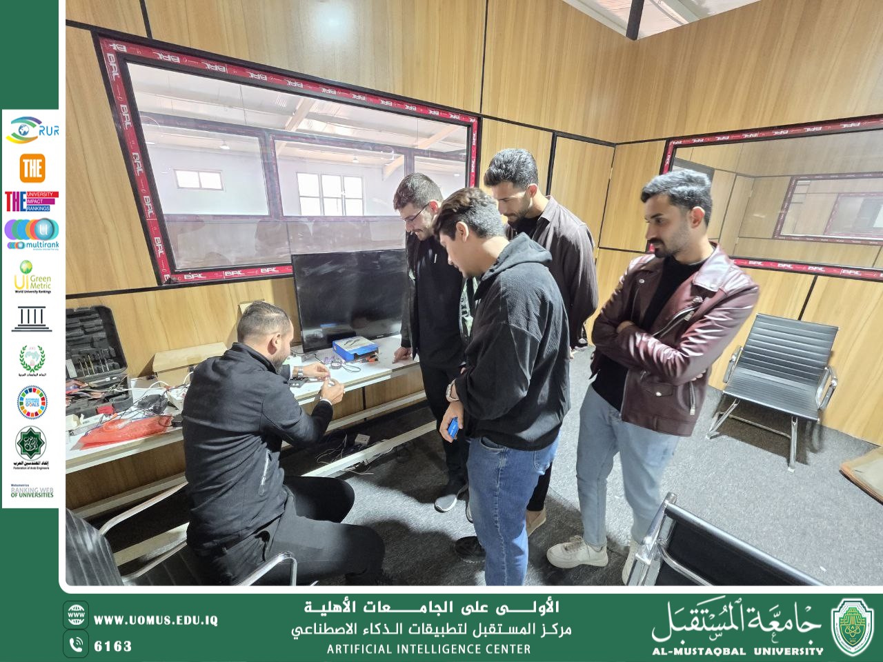 استكمالاً للجلسة التوجيهية التي قدّمها الأستاذ الدكتور نضال خضير العبادي لطلبة مشروع تخرجهم الخاص بتطوير ماسك أوكسجين ذكي، باشر المهندس محمد سعد عبيس بتدريب الطلبة على الجانب العملي للمشروع ضمن مختبرات القسم.