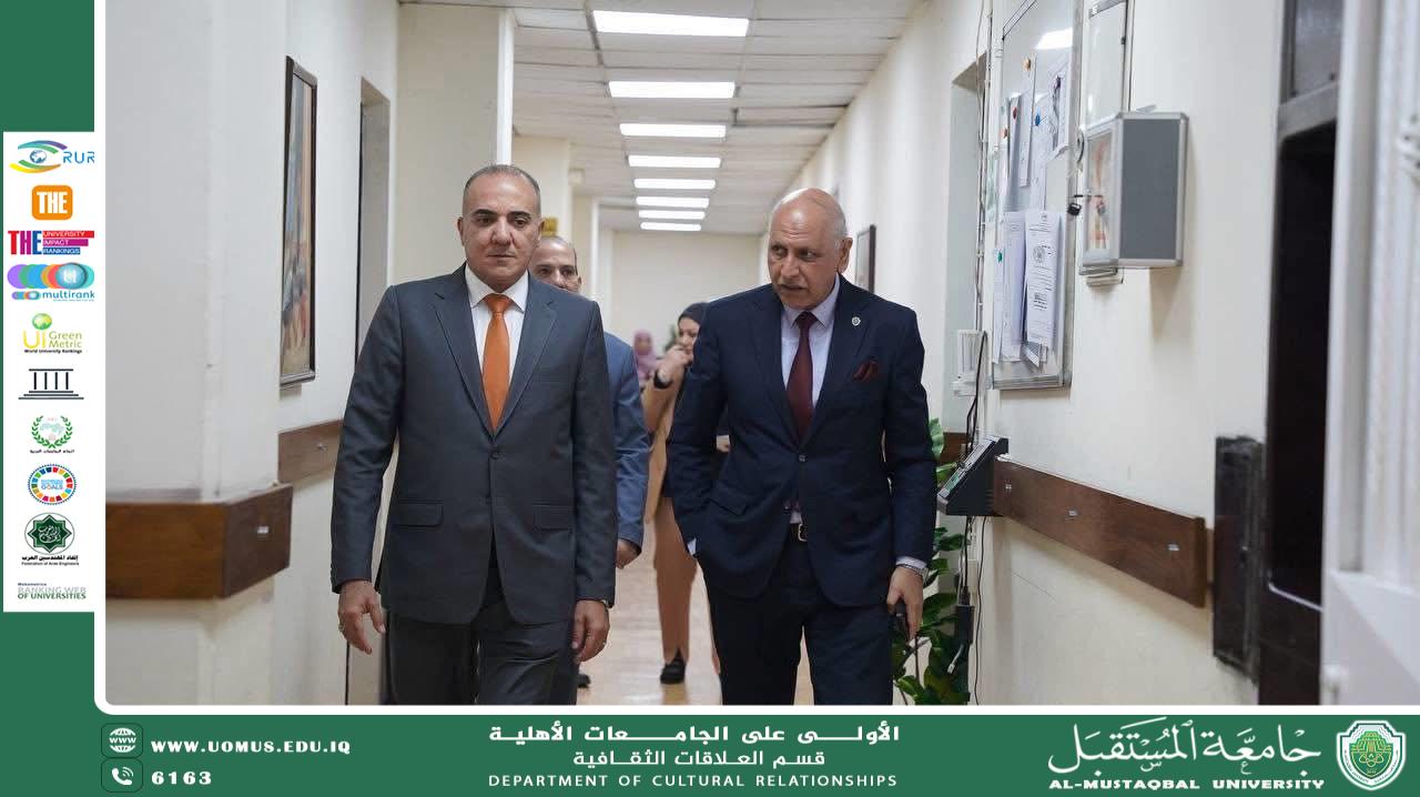 ورافق وفدَ جامعة المستقبل وفدٌ من هيئة البحث العلمي ضم كلًا من الدكتور محمد خماس، مدير مركز بحوث التطبيقات الصناعية وتكنولوجيا المواد والدكتور المهندس ماهر محمود من مكتب رئيس الهيئة للشؤون العلمية، والدكتور المهندس علي قادر بكي، رئيس لجنة اتفاقيات التعاون مع الجامعات الأهلية.