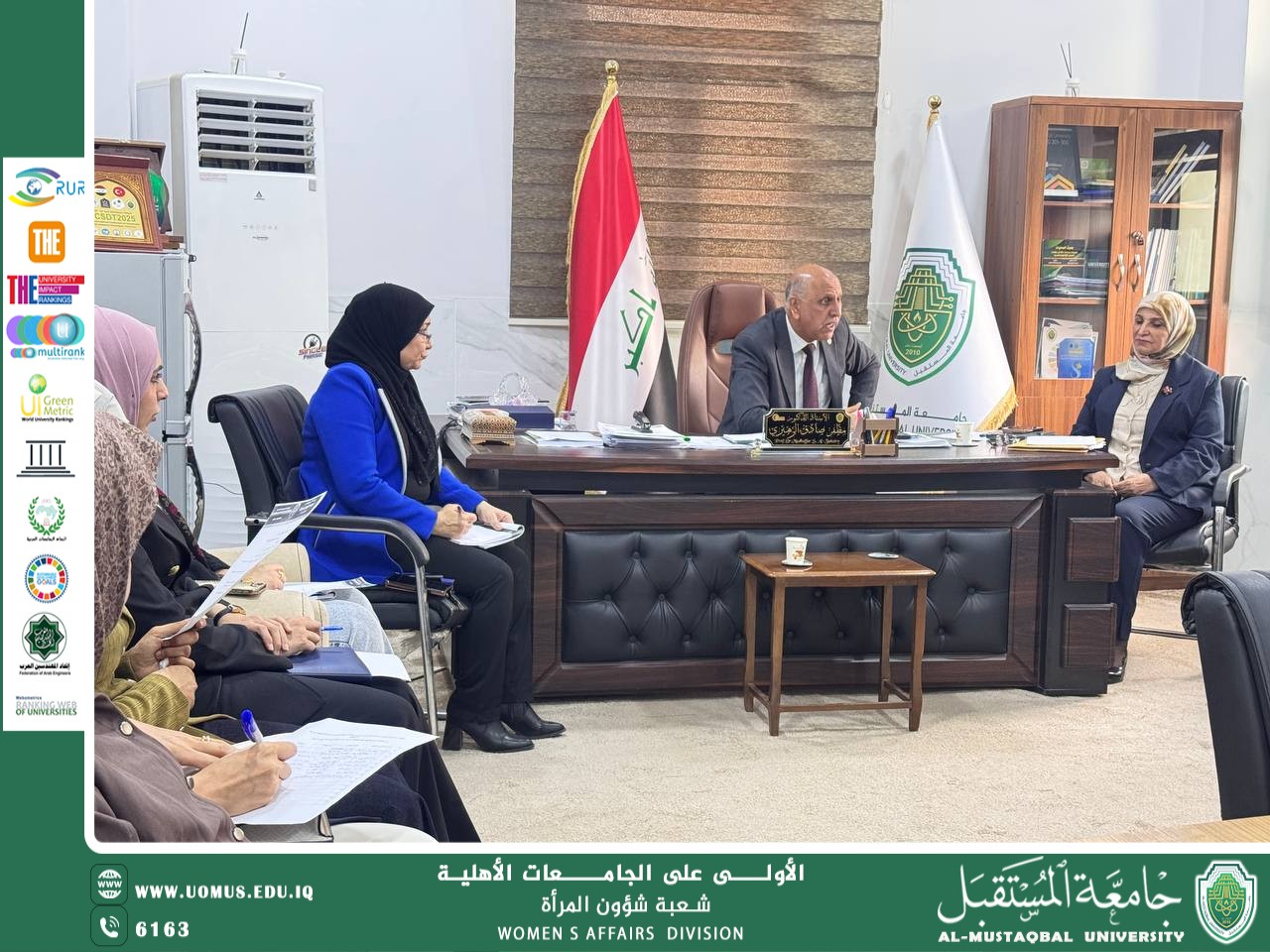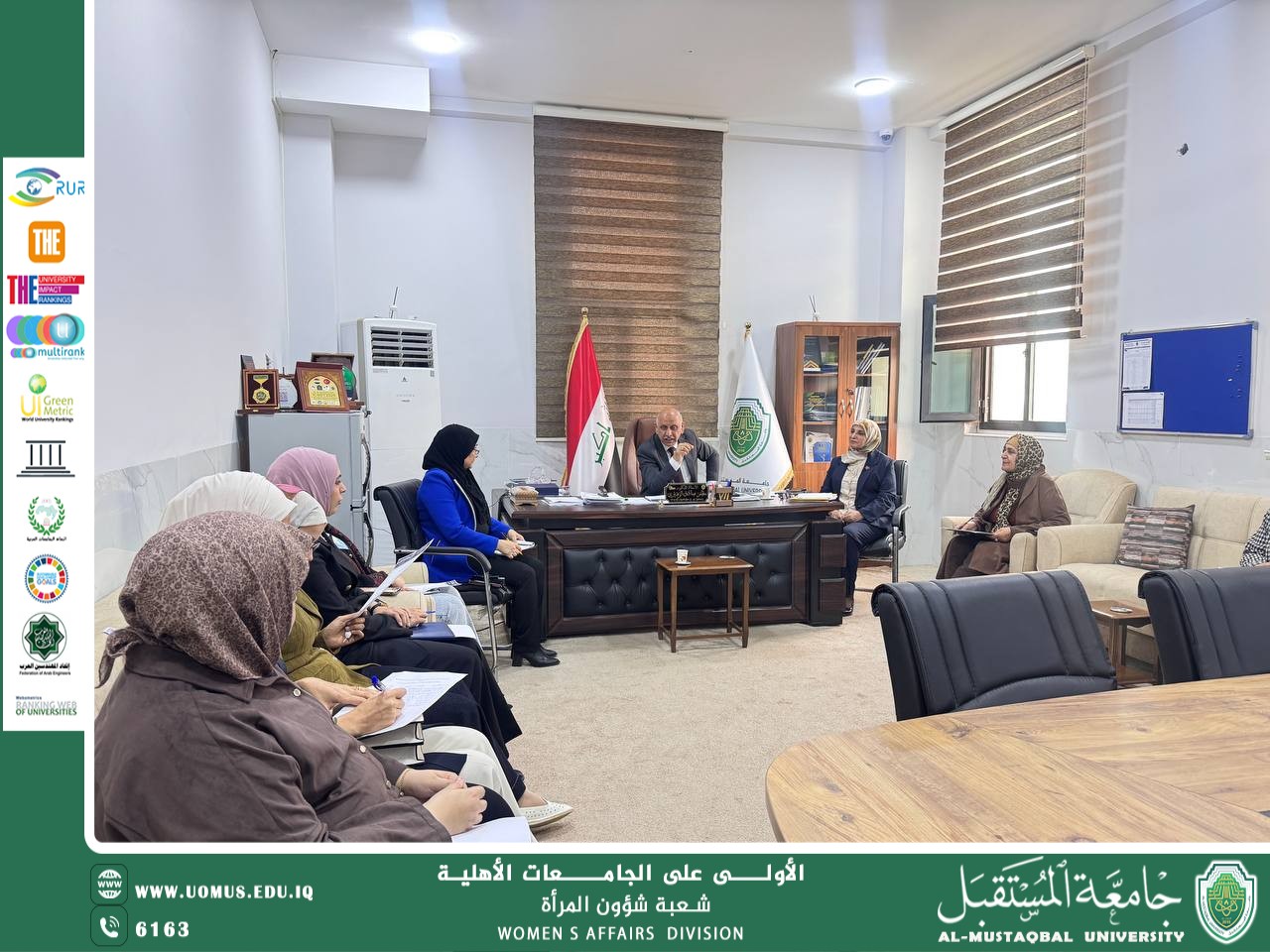 برعاية الاستاذ الدكتور حسن شاكر مجدي رئيس جامعة المستقبل المحترم وتوجيه الاستاذ الدكتور مظفر الزهيري مدير الاشراف العلمي والاكاديمي المحترم عقدت مسؤولةشعبة شؤون المرأة م.م.ماري عمران مهدي اجتماعا لمسؤولات وحدات شؤون المرأة للكليات يوم الثلاثاء الموافق ٩/ ١٢/ ٢٠٢٥ الساعة ١١ صباحا