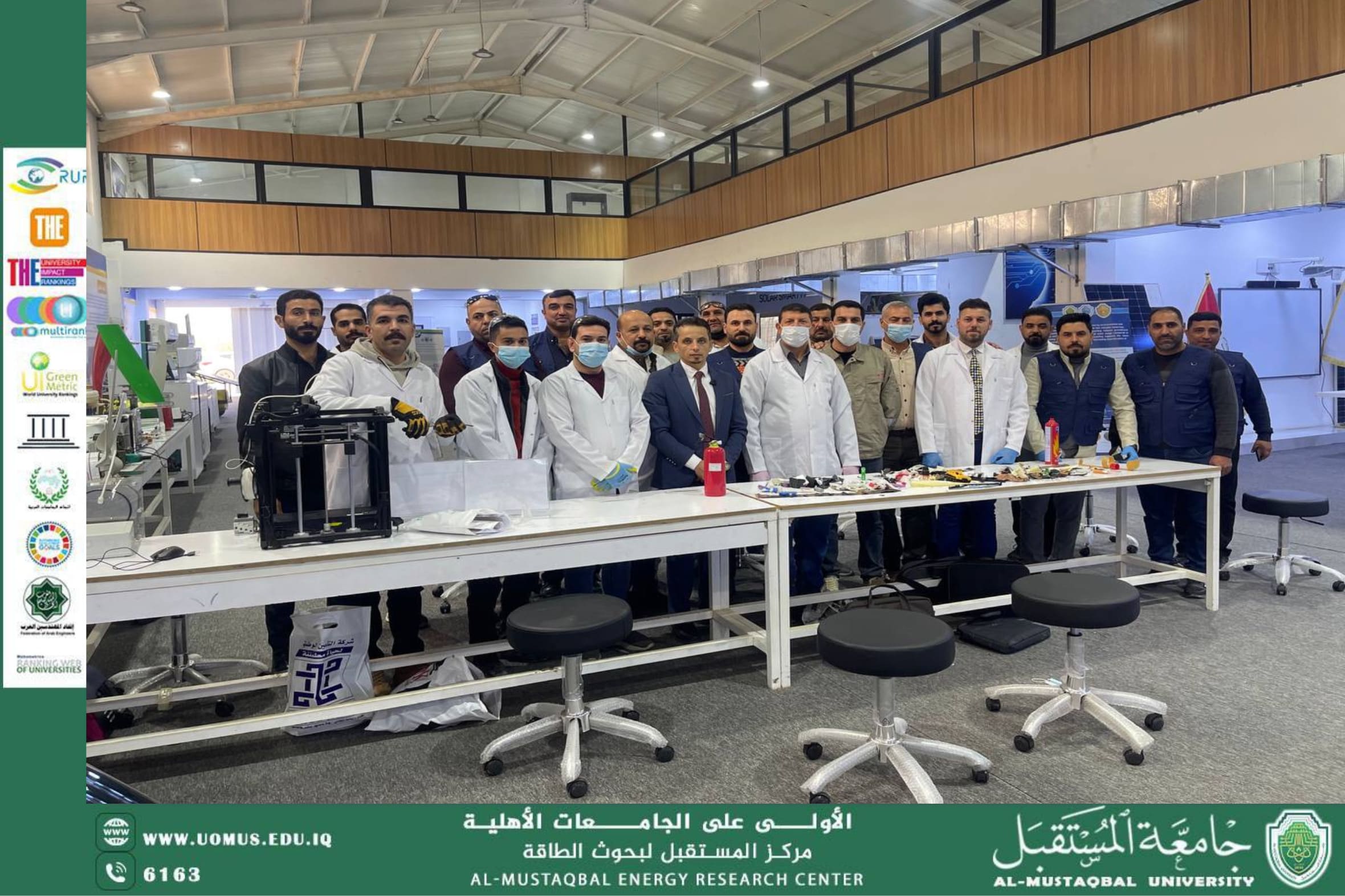 وشهدت الورشة حضور مدير مركز المستقبل لبحوث الطاقة، إلى جانب الدكتور محمد ميثم من قسم هندسة تقنيات ميكانيك القوى، فضلاً عن مشاركة مجموعة من طلبة القسم، حيث اتسمت المحاضرة بطابعها التفاعلي والتطبيقي الذي ركّز على الجوانب العملية لإعادة تدوير بطاريات الليثيوم.