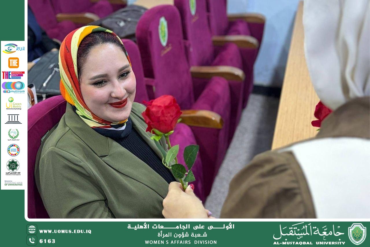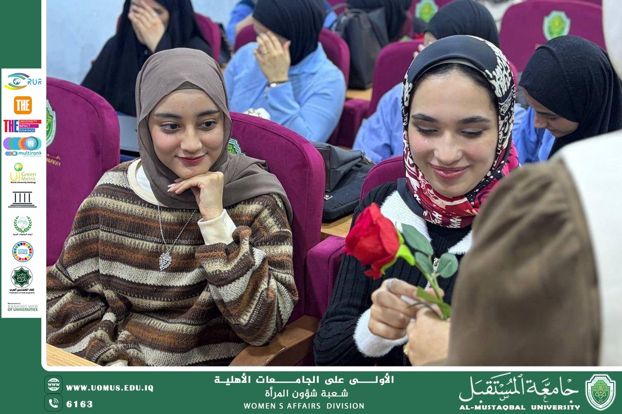 The Department of Artificial Intelligence Engineering Technologies at Al-Mustaqbal University organized an awareness workshop for first-year female students on Tuesday, March 9, 2026. The event was held under the patronage of the University President, Professor Dr. Hassan Shaker Majdi, and in cooperation with the Women’s Affairs Division and the Women’s Affairs Unit. It took place in one of the halls of the Engineering Building on campus, under the supervision of the Head of the Department, Assistant Professor Dr. Zahraa Hashem Karim, with the participation of female staff members of the department, in conjunction with the celebration of International Women’s Day. The workshop addressed several key awareness topics aimed at enhancing students’ digital literacy. It provided comprehensive guidance on protection against cyber extortion, methods of maintaining digital privacy, and safeguarding intellectual property rights related to personal content. In addition, it highlighted best practices for the safe and responsible use of digital platforms, contributing to the development of a well-informed and secure approach to modern technologies among students. This initiative sought to empower female students by equipping them with the essential knowledge and skills required to navigate the digital environment safely. It also emphasized fostering self-reliance in developing innovative projects and building independent academic paths, thereby strengthening women’s roles in scientific and technological fields. The activity was implemented in line with the Third National Action Plan on Women, Peace, and Security (2025–2030), particularly aligning with the “Protection” pillar, which focuses on enhancing women’s safety and security across various domains, especially within digital spaces, by mitigating cyber risks. Furthermore, the workshop aligns with the United Nations Sustainable Development Goals, particularly Goal 4 (Quality Education) through the promotion of digital awareness and knowledge, and Goal 5 (Gender Equality) by supporting women’s empowerment in scientific and technological domains and reinforcing their role in society. The workshop concluded with the distribution of flowers to the students as a gesture of appreciation for the role and status of women in society. This initiative reflects Al-Mustaqbal University’s commitment to fostering a supportive academic environment and underscores its leading role in empowering women and serving the university community. #Ranked_first_among_private_universities_in_Iraq #Goal4: Quality_Education Goal5: Gender_Equality#