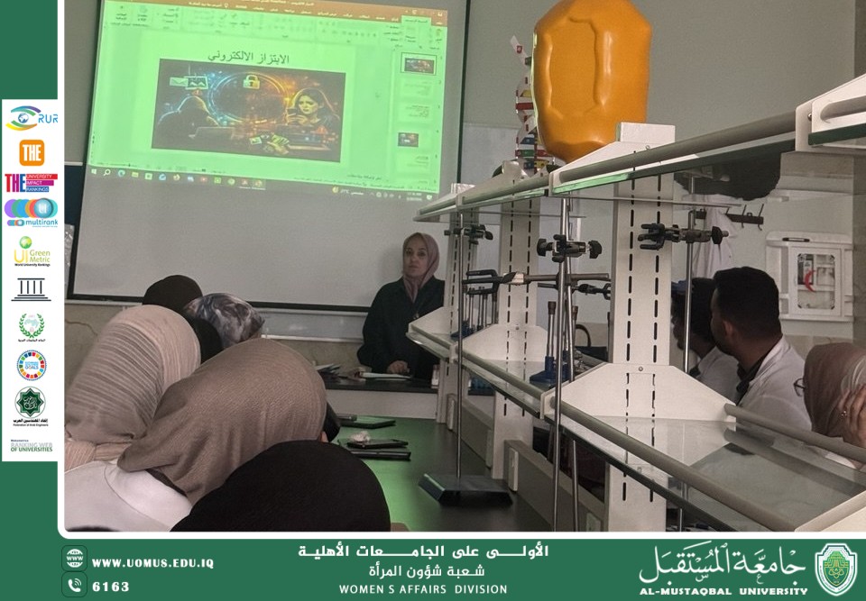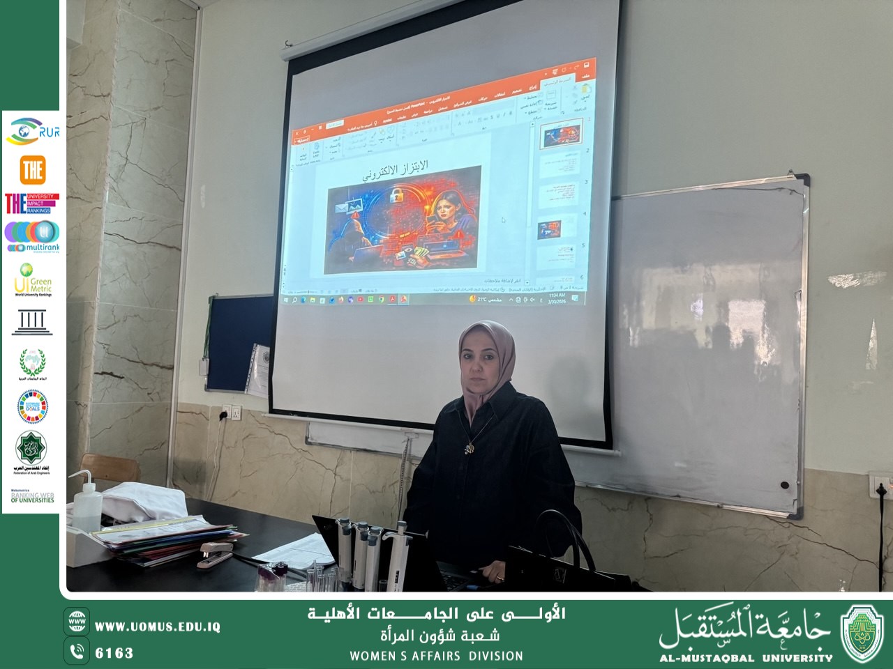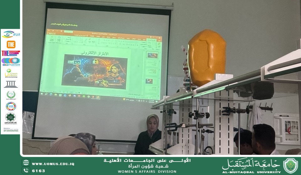 Under the patronage of the University President, the Women’s Affairs Division, in cooperation with the College of Pharmacy, organized an awareness workshop entitled “Electronic Blackmail and Protection Methods” on Monday, March 31, 2026. The workshop was delivered by Lecturer Dr. Bari’a Ali Makki. This workshop was held as part of the implementation of the National Strategy for Iraqi Women, particularly the third pillar concerned with the protection of women and addressing the violence they face. It also aligns with the Sustainable Development Goals, specifically Goal 5 (Gender Equality) and Goal 10 (Reduced Inequalities). The workshop aimed to highlight the importance of confronting negative phenomena affecting women and girls, raising awareness of protection methods against electronic blackmail, and reinforcing the principle of gender equality across various societal contexts #Ranked_first_among_private_universities_in_Iraq #Goal 10: Reducing Inequalities