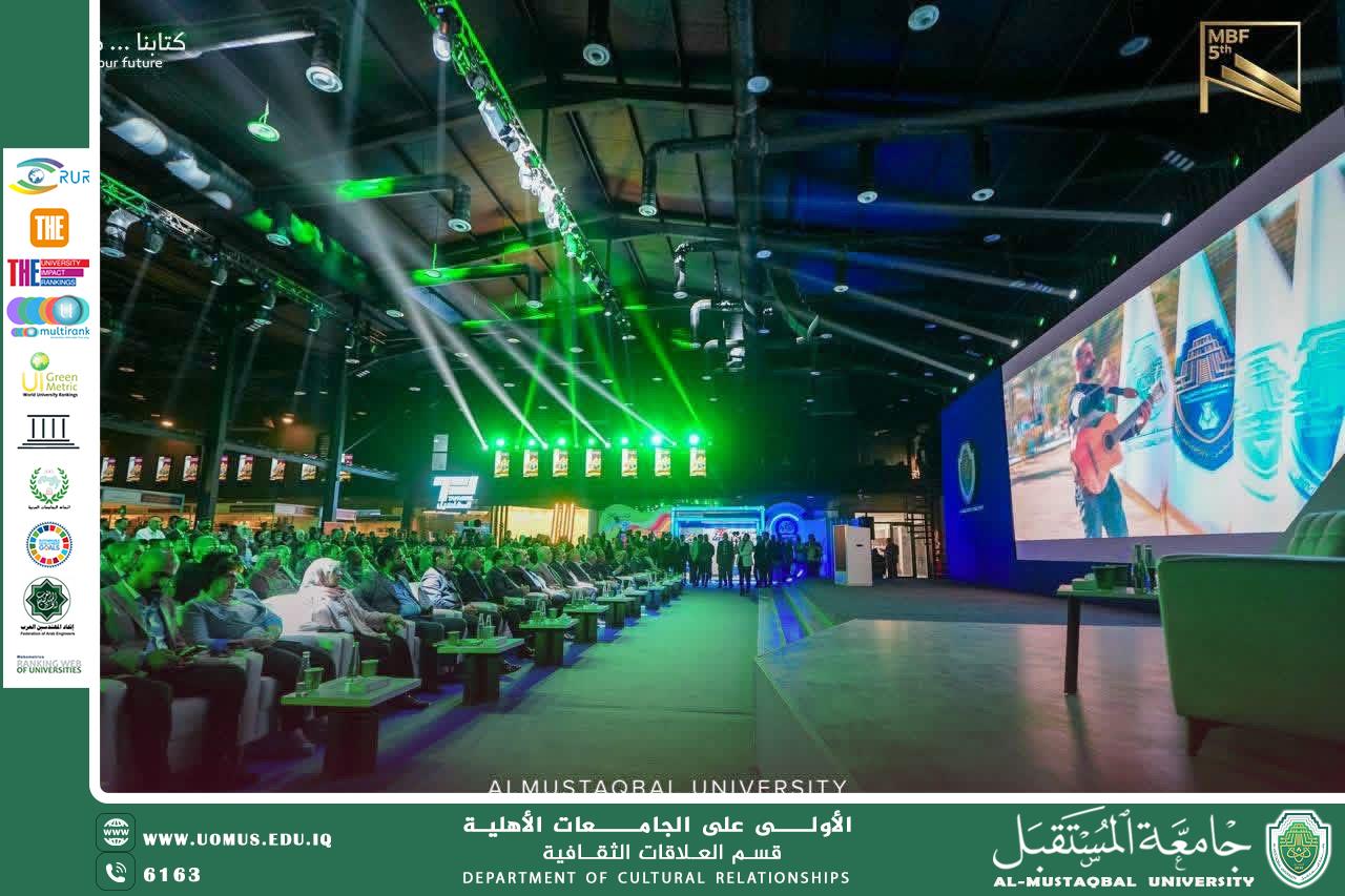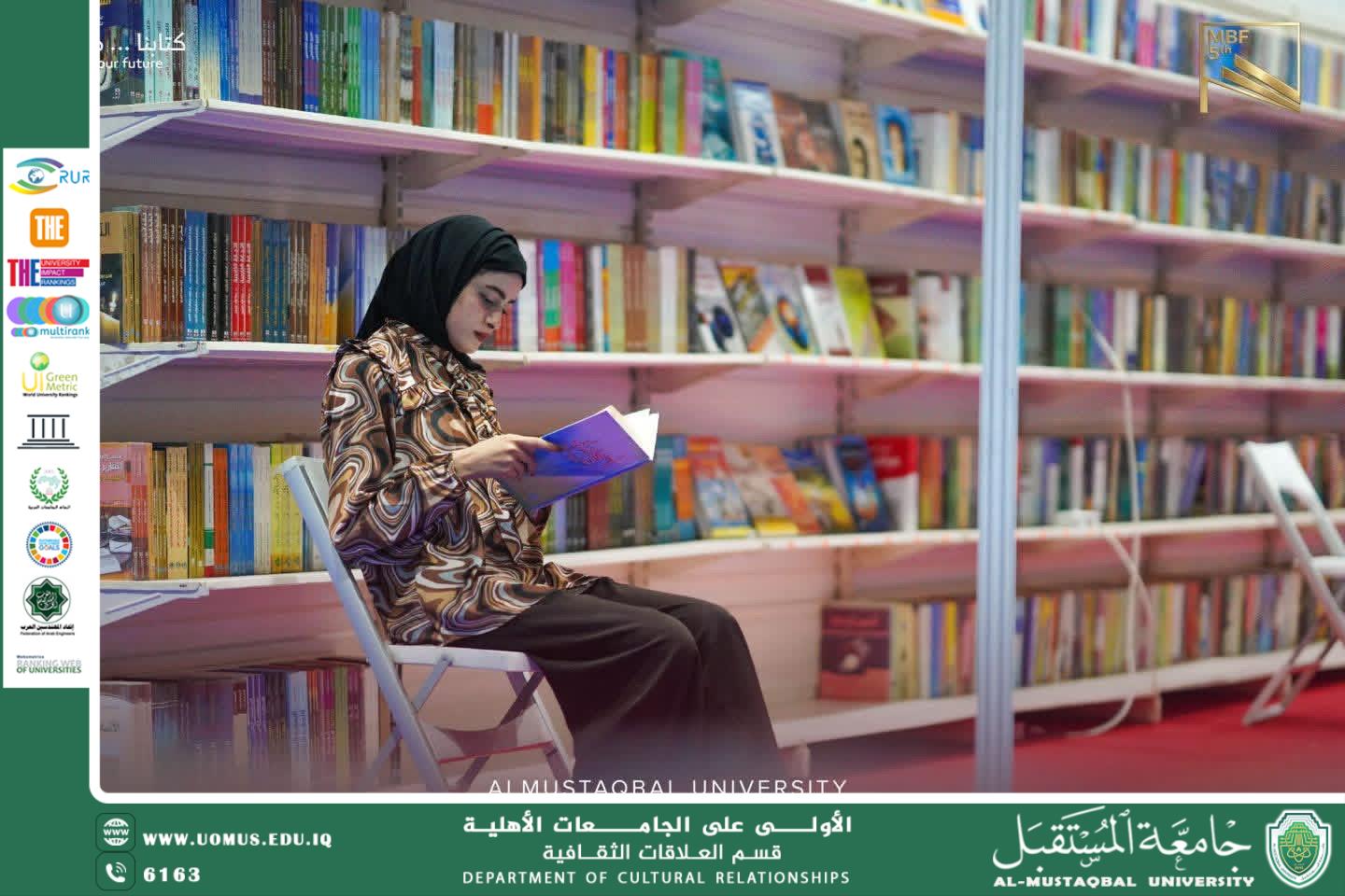 Inauguration of the 5th Annual Al-Mustaqbal Book Fair under the Slogan “Our Book, Our Future” Under the generous patronage of Professor Hassan Shaker Majdi, President of Al-Mustaqbal University, the activities of the 5th Annual Al-Mustaqbal Book Fair commenced on Saturday, April 4, 2026. The fair is recognized as one of the most prominent cultural events among Iraqi universities and is held under the slogan “Our Book, Our Future”, with distinguished attendance that included faculty members, students, and a select group of intellectuals and cultural enthusiasts. The inauguration ceremony began with a speech delivered on behalf of the university administration by Professor Abbas Abdul Ali Al-Bawi, Vice President for Scientific Affairs. In his address, he emphasized that organizing this fair represents a significant step in supporting cultural initiatives and promoting intellectual awareness within the university community, highlighting that the book remains a fundamental pillar in building knowledge and developing students’ intellectual capacities. The fair features the participation of 25 publishing houses from around the world, offering a wide and diverse range of scientific and literary publications to meet the interests of readers and researchers alike. The program also includes a variety of cultural activities, such as interactive sessions with writers, poets, and literary figures, in addition to theatrical performances and artistic exhibitions that enrich the university’s cultural landscape. The fair also introduced an initiative to distribute book vouchers free of charge, aiming to encourage students to read and to foster a lifelong culture of knowledge acquisition. The fair is scheduled to continue for a full week, providing students and visitors with an extended opportunity to explore the latest publications and participate in the diverse cultural activities offered. This event aligns with Al-Mustaqbal University’s vision to cultivate a comprehensive academic and cultural environment within the campus, contributing to the development of a knowledgeable and culturally aware generation capable of keeping pace with global knowledge advancements and actively shaping the future. #Ranked_first_among_private_universities_in_Iraq #Goal_4_Quality_Education