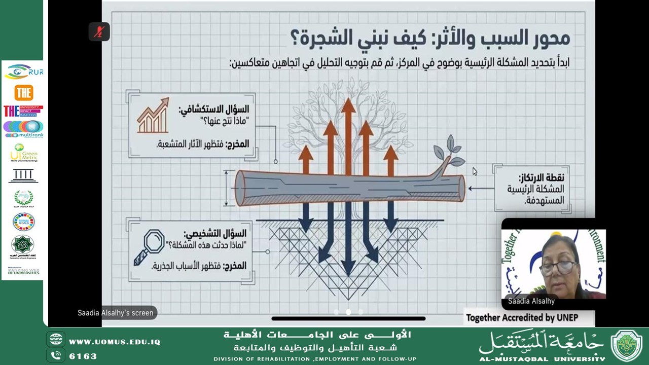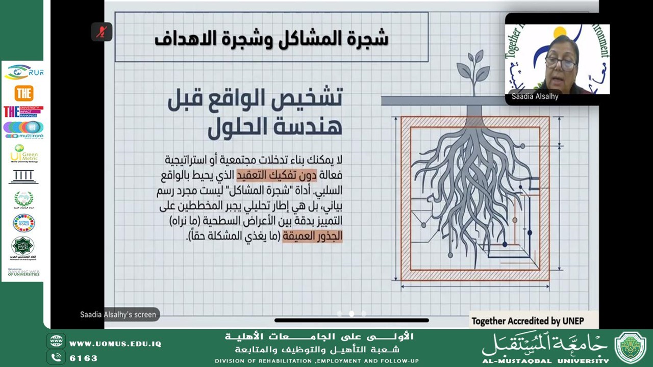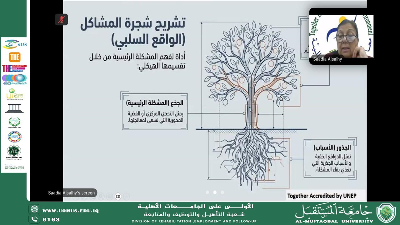 The training program for students and graduates of Al-Mustaqbal University concluded on Thursday, April 9, 2026. The program was held under the patronage of the University President, supervised by the Rehabilitation, Employment, and Follow-up Division, and in cooperation with the Continuing Education Center and Ma’an Organization for Human and Environmental Protection, with active attendance and remarkable engagement from participants throughout the program The final day focused on problem analysis and solving methods, highlighting key practical approaches to understanding challenges, accurately diagnosing them, and selecting appropriate solutions. This contributed to enhancing participants’ efficiency and their ability to handle various situations in the workplace The closing session also witnessed notable interaction from students and graduates through participation in practical activities and discussions, reflecting their commitment to developing their personal and professional skills At the conclusion of the program, Al-Mustaqbal University extends its sincere thanks and appreciation to all organizing and supporting parties, including the Rehabilitation, Employment, and Follow-up Division, the Continuing Education Center, and Ma’an Organization for Human and Environmental Protection, as well as all trainers and participants, for their effective role in the success of this program This program comes as part of the university’s ongoing efforts to prepare qualified young cadres capable of competing in the labor market by developing their skills and refining their capabilities in line with future requirements