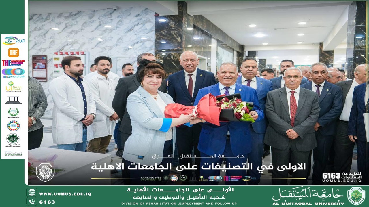 Al-Mustaqbal University witnessed, on Sunday, April 12, 2026, the launch of the “Fourth International Future Sustainability Week,” under the patronage and attendance of the University President, Professor Dr. Hassan Shaker Majdi. The event took place in a distinguished scientific and cultural atmosphere, with wide participation from academics and students, in support of the university’s vision to achieve sustainable development goals The activities commenced with the opening of several scientific and health exhibitions organized by the colleges, along with the launch of academic initiatives and student projects aimed at enhancing the educational environment and providing practical solutions that serve the community The first day also saw the launch of various scientific and academic events, including an international legal conference and a nursing forum, in addition to a range of student activities and presentations that reflected a high level of engagement and active presence across the campus The program also included sports, artistic, and cultural activities, as well as the inauguration of modern educational facilities that contribute to supporting digital transformation and developing the university’s infrastructure These activities aim to promote sustainability concepts, foster an integrated educational environment that encourages innovation and active participation, and align with the requirements of modern development The university presidency affirmed its continued support for scientific and cultural activities, in a way that contributes to building a conscious and sustainable academic community