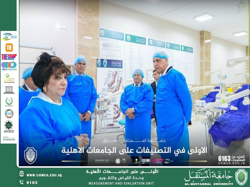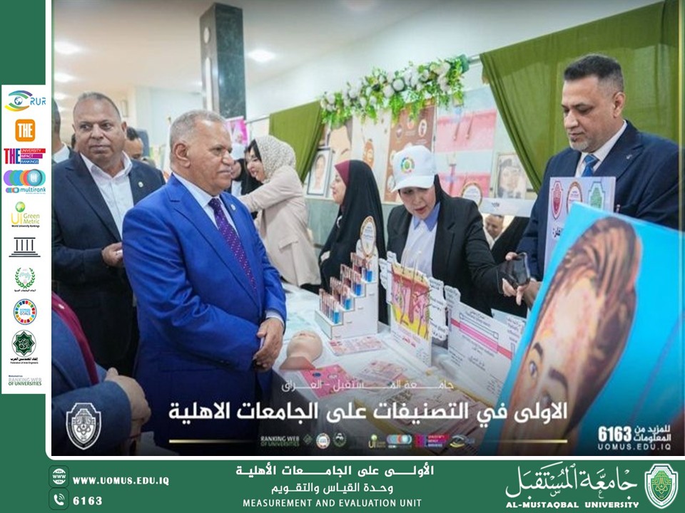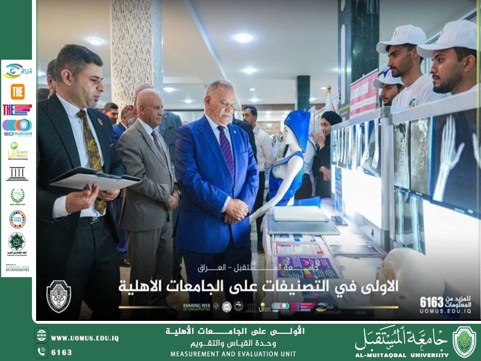 The activities of the first day of the Fourth International Sustainability Week at Al-Mustaqbal University were launched in a distinguished official and academic atmosphere, reflecting the university’s commitment to promoting and embedding sustainability concepts across its educational and student activities. The President of Al-Mustaqbal University, Professor Dr. Hassan Shaker Majdi, inaugurated a series of scientific and artistic exhibitions, along with the launch of several sports activities held across a number of colleges, including Health and Medical Technologies, Pharmacy, Dentistry, Physical Education and Sports Sciences, and Arts. The events witnessed wide participation from academic leaders, faculty members, and students, who presented innovative scientific projects that demonstrated a strong engagement with sustainability concepts and their practical applications across various disciplines. The program also included art exhibitions addressing environmental themes in creative ways, in addition to sports activities aimed at promoting health awareness and encouraging students to adopt active lifestyles. During his tour of the exhibitions, the University President emphasized the importance of these initiatives in supporting applied education and linking theoretical knowledge with practical implementation. He also highlighted their role in empowering students to contribute effectively to achieving sustainable development goals. These activities align with Al-Mustaqbal University’s vision to foster innovation and social responsibility, contributing to the preparation of a conscious generation capable of making a positive impact on the path toward sustainable development.