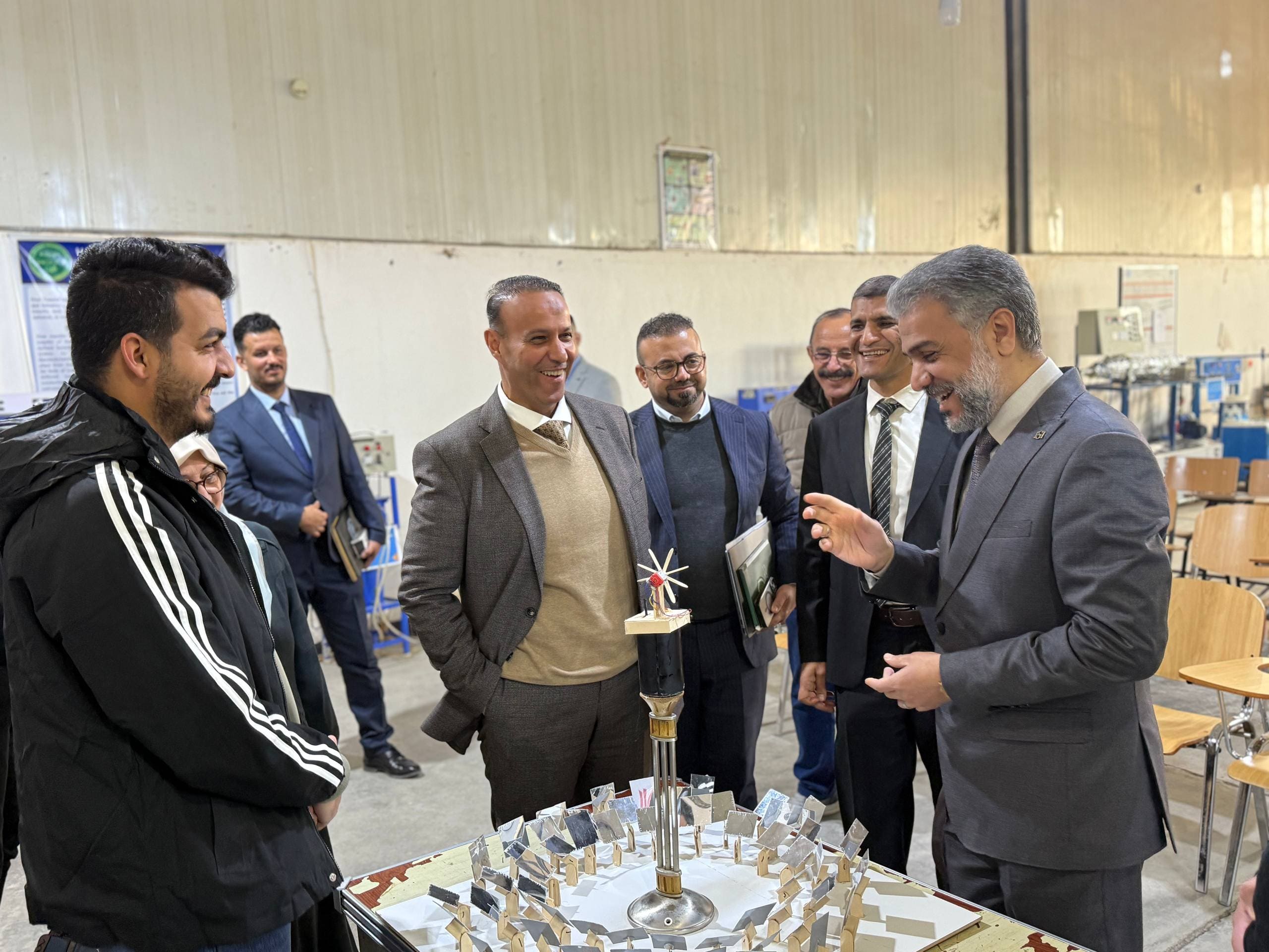 The Director of the Center, Dr. Salwan Obaid Waheed, accompanied by the Dean of the College of Engineering Technologies, Assistant Professor Dr. Azhar Mohsen Abd, conducted a field visit to a number of scientific laboratories at the College of Engineering Technologies. The visit aimed to strengthen academic cooperation and to review the latest scientific and applied research activities within the college. During the visit, the delegation toured several specialized engineering laboratories, where they reviewed a number of distinguished scientific projects, particularly those related to solar energy and its practical applications. These projects focus on the utilization of renewable energy sources and their application in various engineering fields, contributing to sustainable development. The visiting officials listened to detailed explanations provided by faculty members and students responsible for the projects, covering the working mechanisms, scientific objectives, achieved results, and the potential for further development and alignment with labor market needs. Dr. Silwan Ubaid Waheed praised the advanced scientific level of the presented projects and commended the efforts made by the college administration, academic staff, and students. He emphasized the importance of supporting such scientific initiatives that contribute to the advancement of research and innovation in engineering technologies. For his part, Assistant Professor Dr. Azhar Mohsen Abd affirmed the college’s commitment to providing a stimulating academic environment that encourages creativity and research, noting the college’s continuous support for projects that keep pace with technological advancements and serve the community.