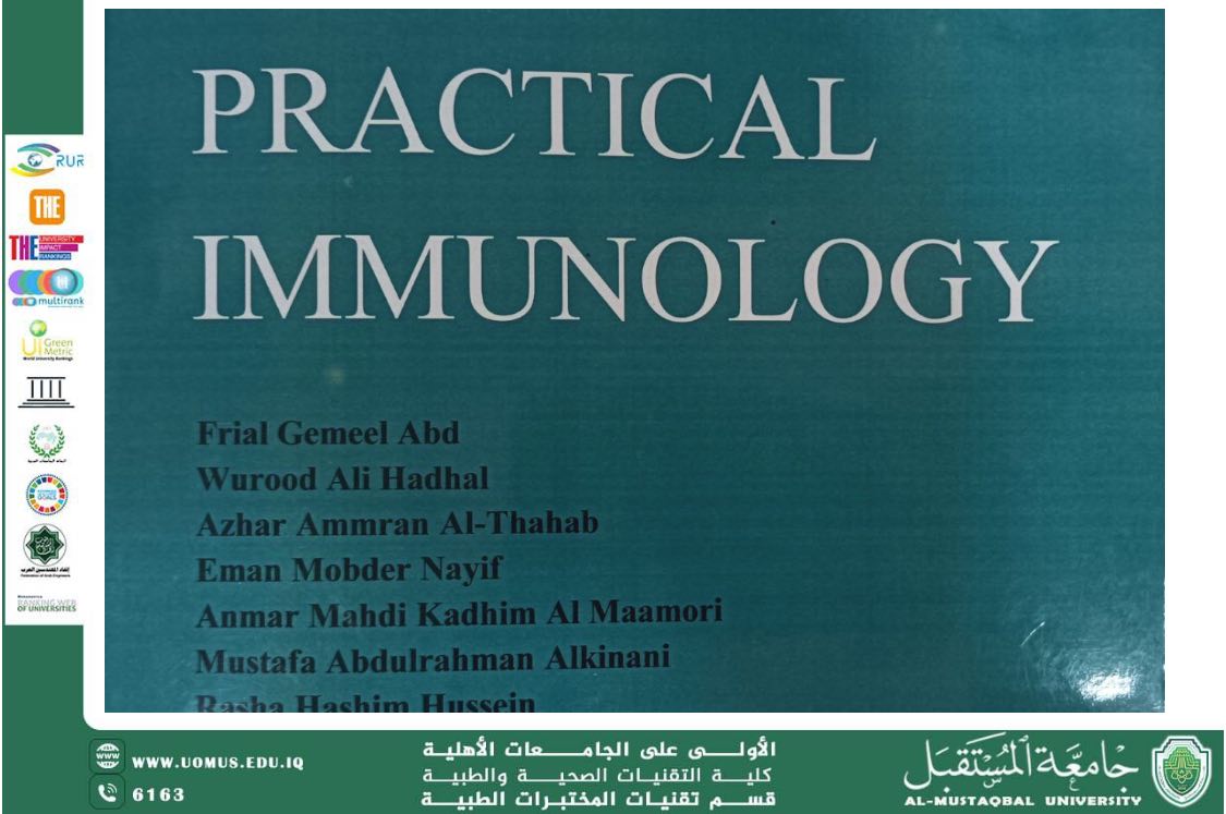 In a remarkable scientific achievement that reflects Al-Mustaqbal University’s commitment to supporting research and innovation in the medical fields, a new scientific book entitled “Practical Immunology” has recently been published with the participation of Dr. Worood Ali Hethal, faculty member at the College of Health and Medical Technologies – Department of Medical Laboratory Techniques. The book was co-authored in collaboration with a distinguished group of professors:
