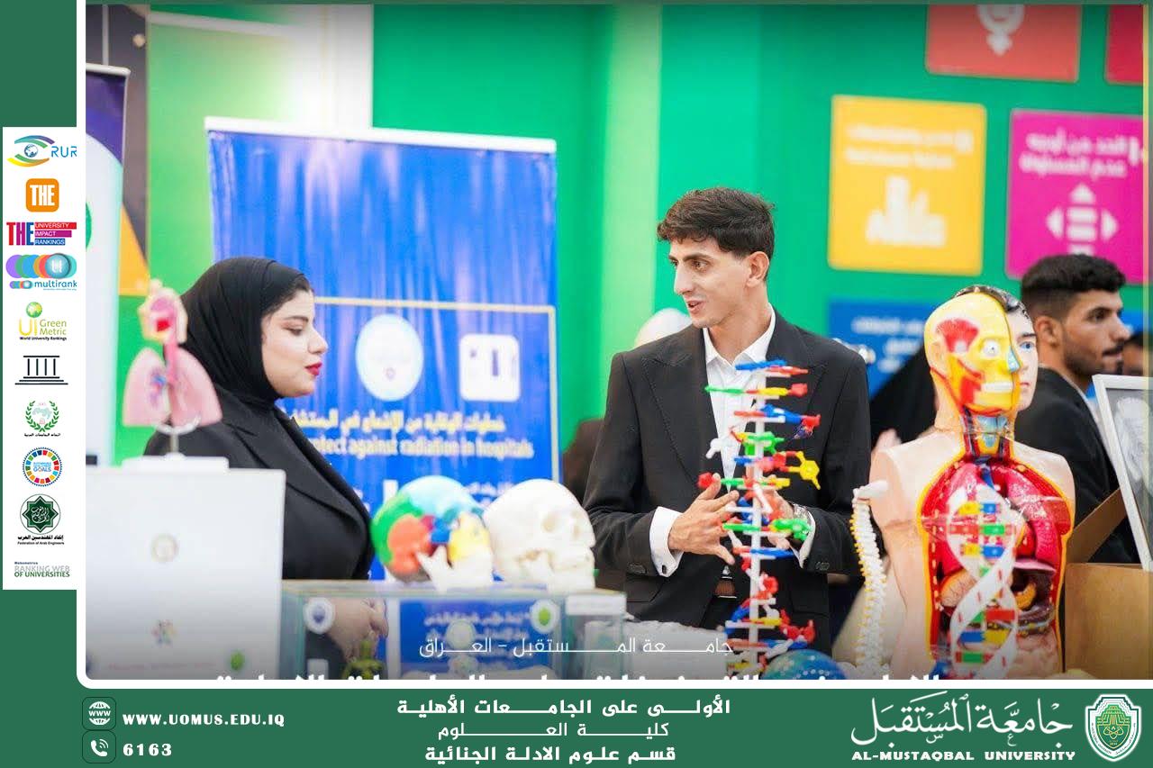 The ceremony featured scientific exhibitions and practical demonstrations presented by students from the Departments of Biochemistry, Forensic Evidence, Medical Analysis, and Intelligent Medical Systems, showcasing innovative research projects that reflect creativity, academic distinction, and alignment with the United Nations Sustainable Development Goals (SDGs), including: